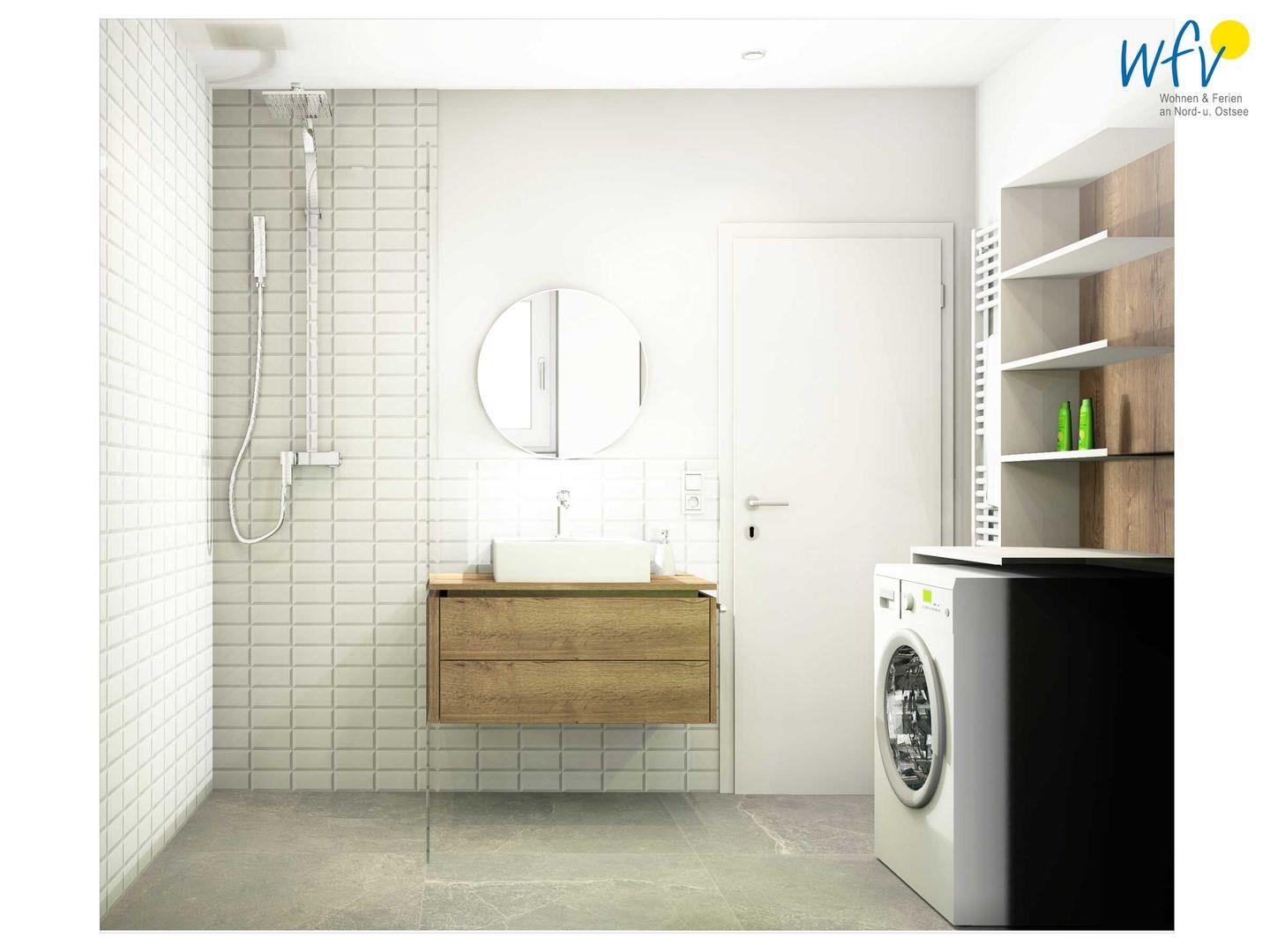 Weiteren Wohnkomfort bietet Ihnen das moderne Tageslichtbad mit ebenerdiger Dusche, breitem Waschtisch und fein abgestimmter Beleuchtung. Ein separates WC entspannt die täglichen Badezimmerroutinen.
