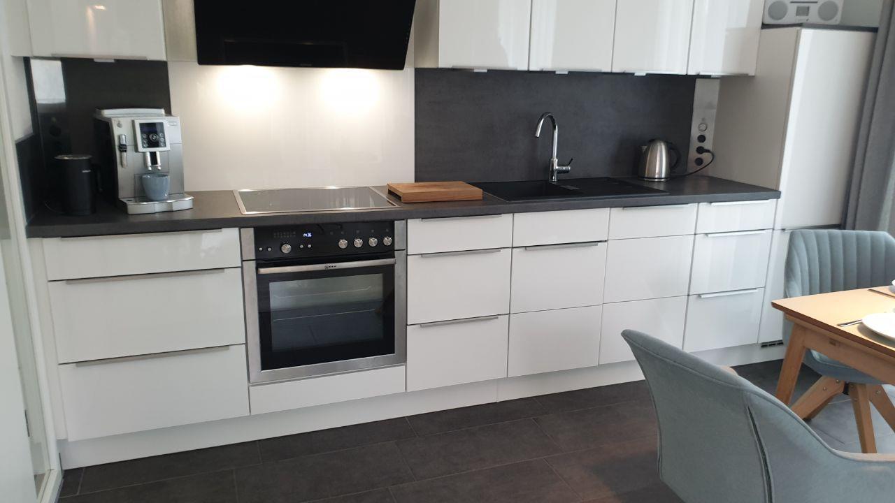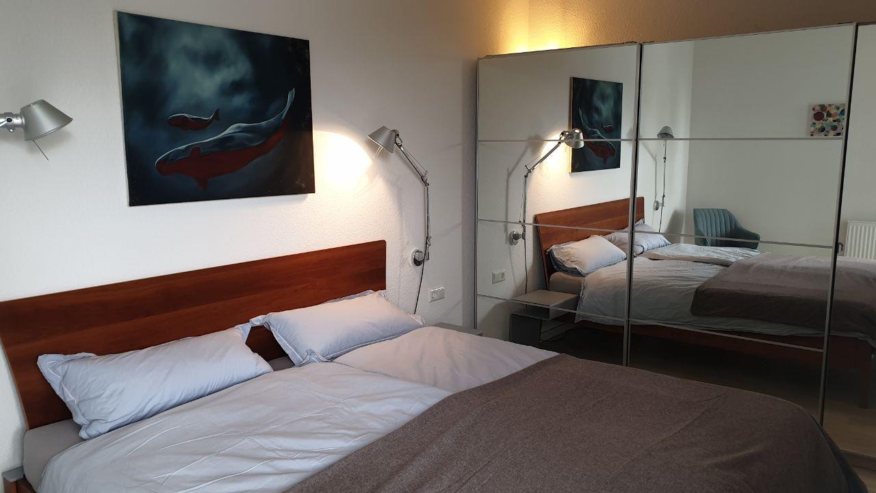 Auf 50 m² finden Sie hier genug Platz zum Entspannen. So lädt die Wohn-Esszimmer Kombination mit der komplett ausgestatteten Küche zu geselligen Abenden und zum gemeinsamen Kochen ein. Das Elternschlafzimmer überzeugt hierbei durch ein bequemes Doppelbett mit einem Kleiderschrank für genügend Stauraum, während das zweite Schlafzimmer ein bequemes Einzelbett bereithält. Für eine kühle Erfrischung am Morgen oder Abend sorgt das modern ausgestattete Bad.