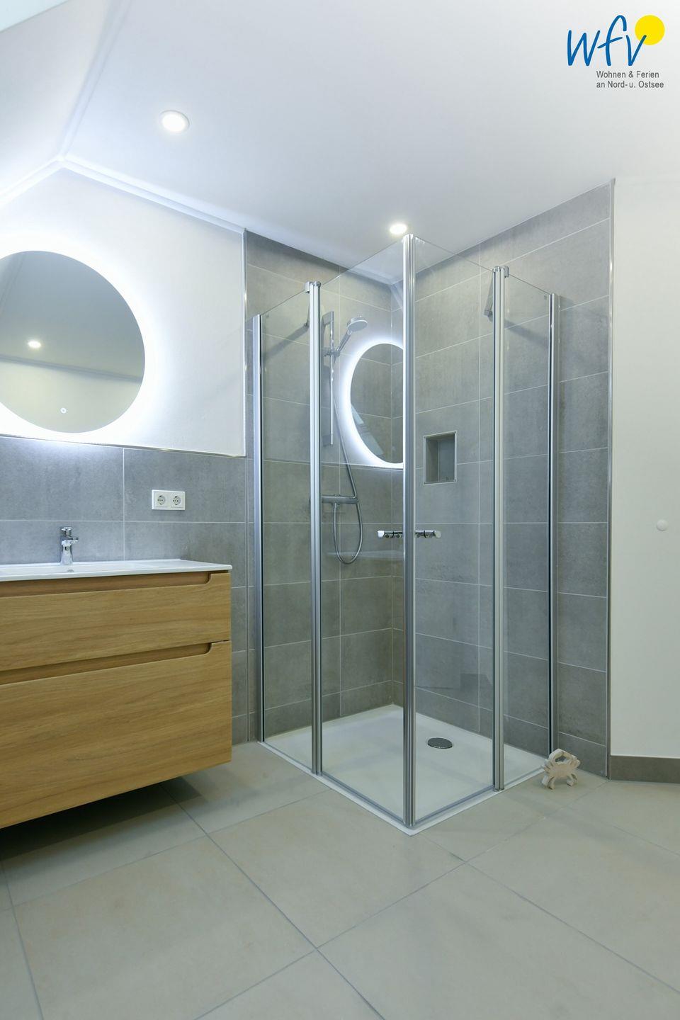 Die 3 Badezimmer verfügen über Dusche, WC, Fenster, Haartrockner und Kosmetikspiegel und tragen damit zu einem angenehmen Aufenthalt auch bei voller Belegung bei. Internet und WLAN sind selbstverständlich vorhanden, sodass Sie auch während Ihres Aufenthalts gut vernetzt bleiben.