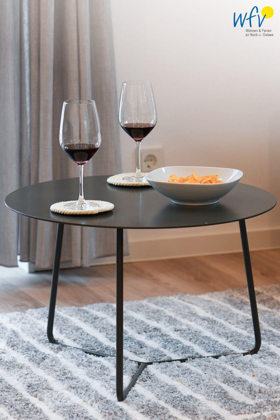 Der Wohnbereich mit Sofaecke, Sofa, TV und Essbereich schafft einen angenehmen Rahmen für entspannte Urlaubstage. Insgesamt stehen Ihnen 2 Fernseher mit einer Größe von 44 bis 55 Zoll zur Verfügung. Vinylböden in Wohn- und Schlafbereichen sowie eine Fußbodenheizung sorgen für ein wohnliches und komfortables Ambiente. Eine Garderobe ergänzt die praktische Ausstattung im Alltag.