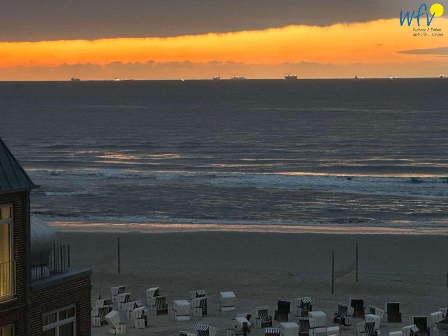 Schon beim Eintritt in die Wohnung haben Sie den wunderbaren Blick auf das Meer. Vom gemütlichen Esszimmertisch aus und auch vom Balkon kann man an 365 Tagen im Jahr und zu jeder Tages- und Nachtzeit den Blick auf das sich immer ändernde Aussehen der Nordsee genießen. Die Möglichkeit zu haben, durch das große Rundbogenfenster diesem Naturspiel des Meeres zuzusehen, ist einzigartig. Wetterunabhängig, also ohne die Wohnung bei schlechtem Wetter überhaupt verlassen zu müssen, können Sie an jedem Tag des Jahres und zu jeder Stunde den Blick auf den Strand und das Meer genießen und dem Meeresrauschen zuhören. Das ist Erholung pur. Was will man mehr, als die Seele so baumeln zu lassen...
