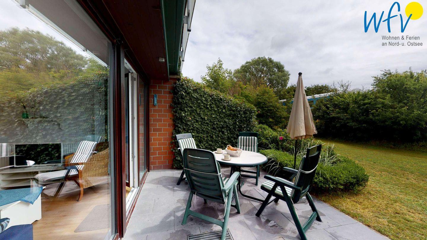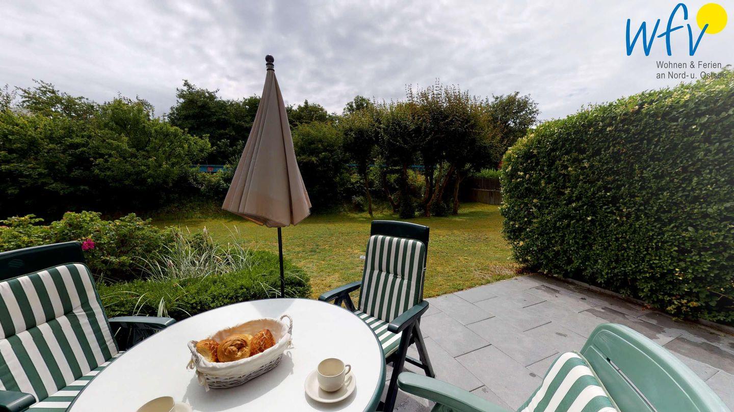 Charmante Ferienwohnung mit Gartenblick und Süd-Terrasse auf Wangerooge für erholsame Urlaubstage.