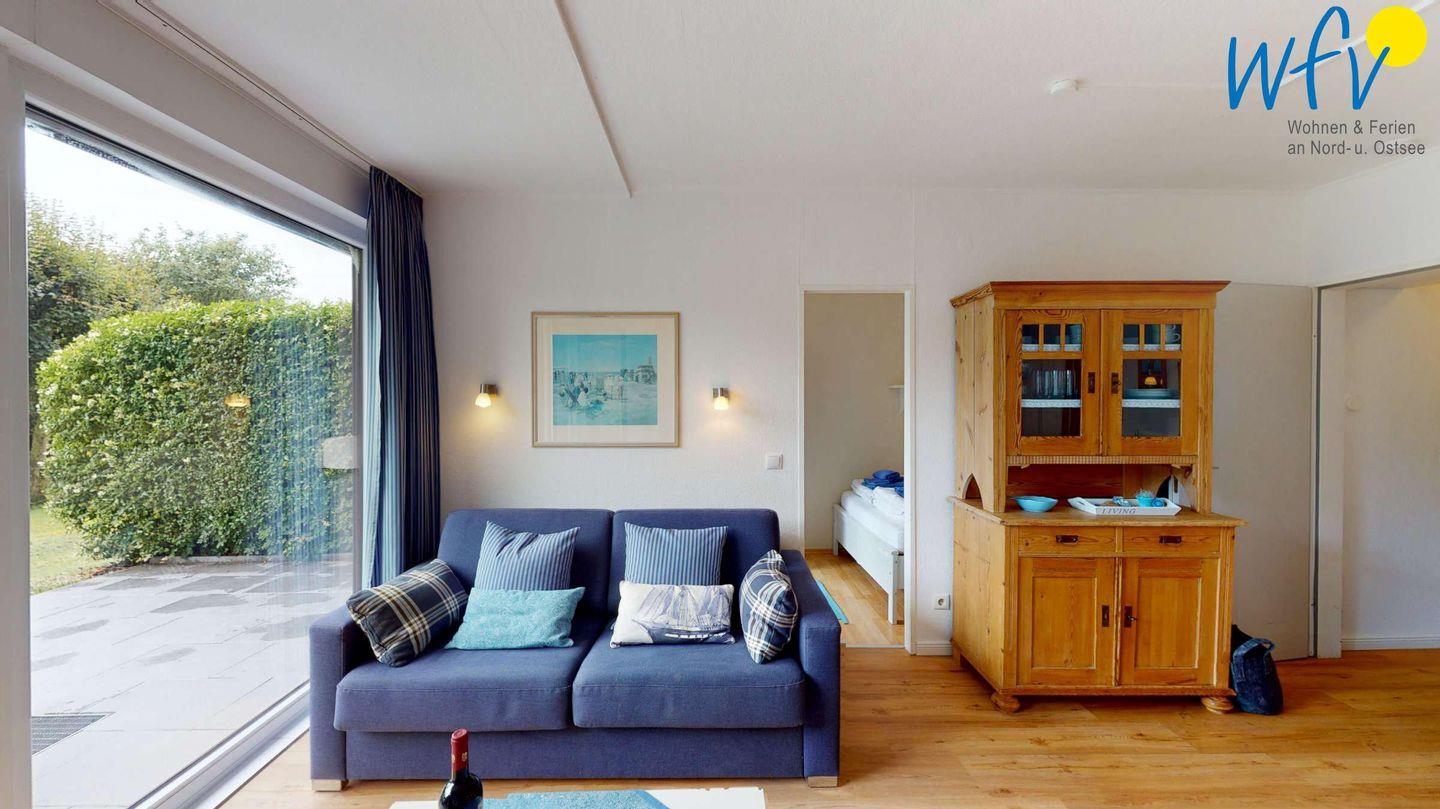 Zum ausgiebigen Entspannen lädt das gemütliche, lichtdurchflutete Wohnzimmer mit Panoramafenster, Essbereich, Couchecke und TV ein. Hier können Sie wunderbar bei offener Terrassentür mit Blick in den Garten zusammensitzen. Oder Sie relaxen im schönen Außenbereich der Ferienwohnung: Auf der windgeschützten Süd-Terrasse mit angrenzendem Garten werden Sie sich wunderbar erholen, auch im Herbst und Winter. Sich im bequemen Gartenstuhl die Sonne ins Gesicht scheinen zu lassen, ein spannendes Buch zu lesen oder abends bis zum Sonnenuntergang beisammenzusitzen - das sind unvergessliche Urlaubsmomente auf Wangerooge.
