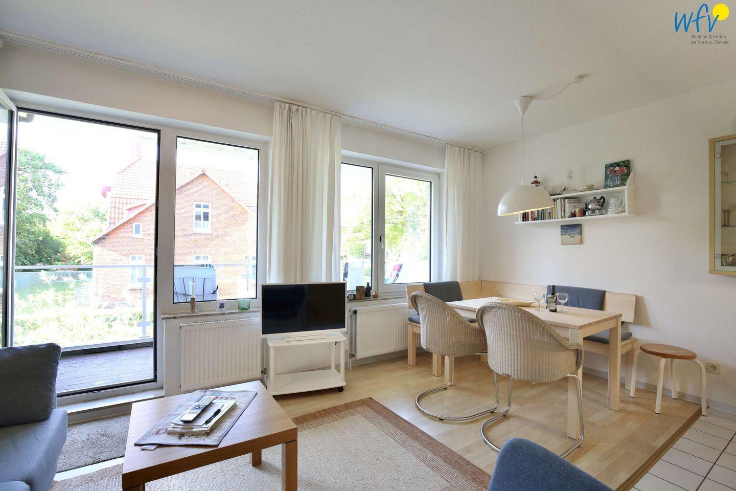 Besonders auf dem Balkon in Richtung Süden erwarten Sie erholsame Auszeiten. Sich hier die Sonne ins Gesicht scheinen zu lassen, in Ruhe ein Buch zu lesen oder gemeinsam ein gutes Glas Wein zu trinken ist ein wunderbares Urlaubsgefühl. Vom Balkon aus genießen Sie einen einmaligen Blick auf den Alten Leuchtturm von Wangerooge.