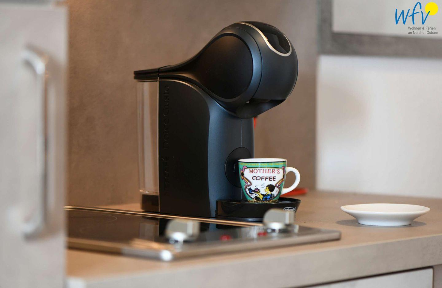 Ob warme Frühstücksbrötchen, kleine Mittagssnacks oder Gerichte am Abend - in der gut ausgestatteten Küche finden Sie alles, um schnell und einfach Leckereien zu zaubern! Sie verfügt u.a. über einen 2-Plattenherd, einen Backofen mit Grill, eine Mikrowelle und über eine Spülmaschine. Kaffeeliebhaber finden neben der klassischen Kaffeemaschine eine Nescafè Dolce Gusto. Ihren Kaffee können Sie im Thermobecher auch gerne mit an den Strand nehmen. Für den sprudelnden Frischekick gibt es einen einen SodaStream mit zwei Glasflaschen.