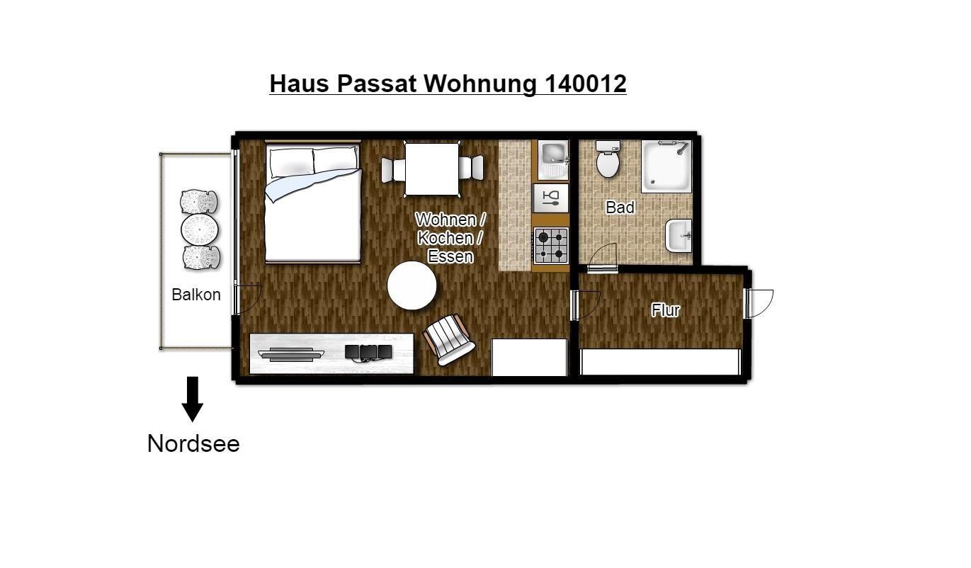 Die Ferienwohnung umfasst ca. 30 m², befindet sich im 1. Obergeschoss und ist durch eine geräumige Treppe gut zu erreichen. Das "Haus Passat" liegt in der Peterstraße 30, direkt neben dem "Kaiserhof". Alle Lokalitäten erreichen Sie innerhalb von 5-7 Minuten. Bis zum nächsten Fahrradverleih sind es ca. 8 Minuten.
