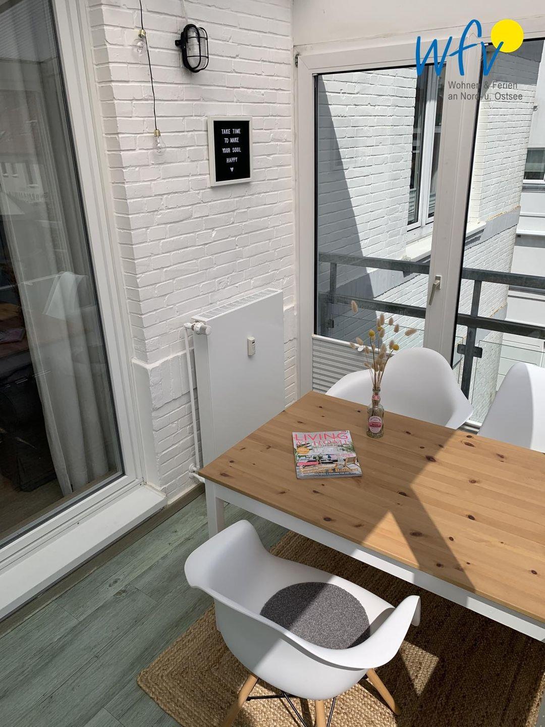 Besonders der Wintergarten bietet Ihnen bei jedem Wetter einen gemütlichen Platz zum Lesen und Entspannen. Von hier aus und auch vom Balkon haben Sie einen einmaligen Blick über die Dächer der Insel und auf das Wattenmeer.