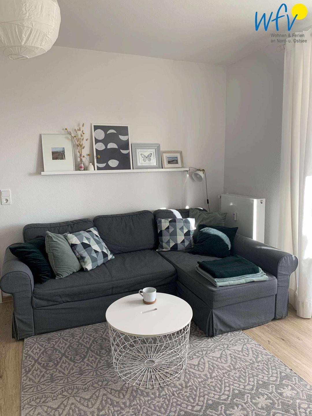 Im hellen Wohnzimmer, das u.a. mit einem großen Schlafsofa eingerichtet ist, befindet sich ein Ultra-HD Fernseher und eine Stereoanlage. Herrlich zum Relaxen! Für das Surfen vom Smartphone aus empfangen Sie kostenlos freies WLAN.