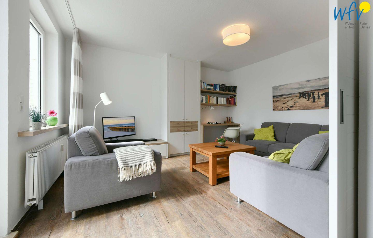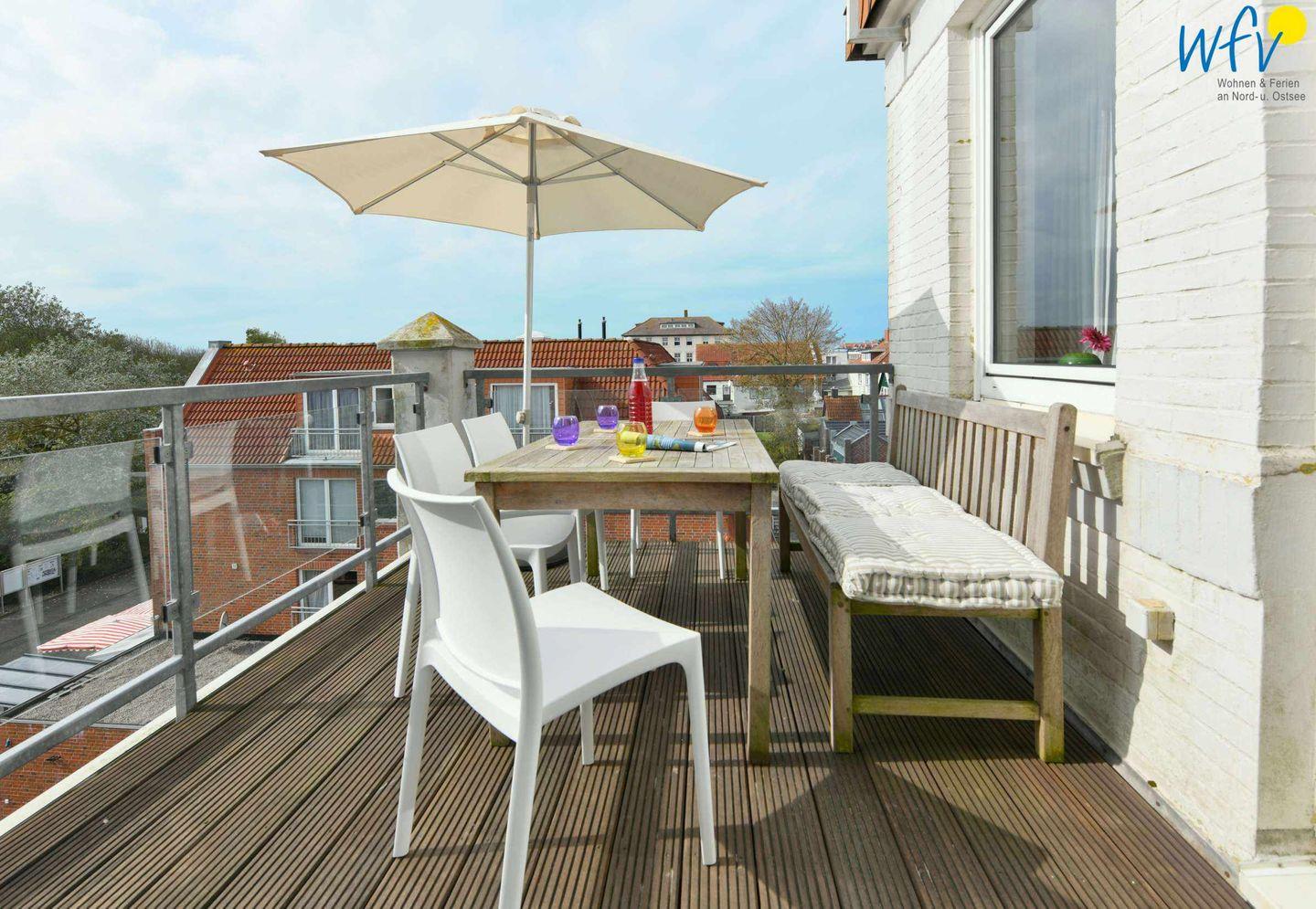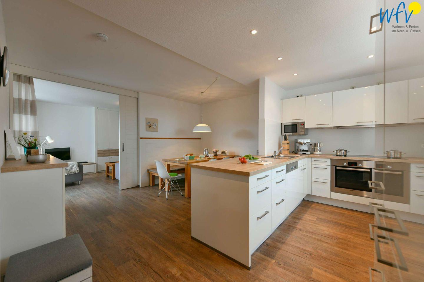 Helle Ferienwohnung auf Wangerooge nahe Strand mit Balkon, moderner Küche und kostenlosem WLAN für entspannte Urlaubstage.