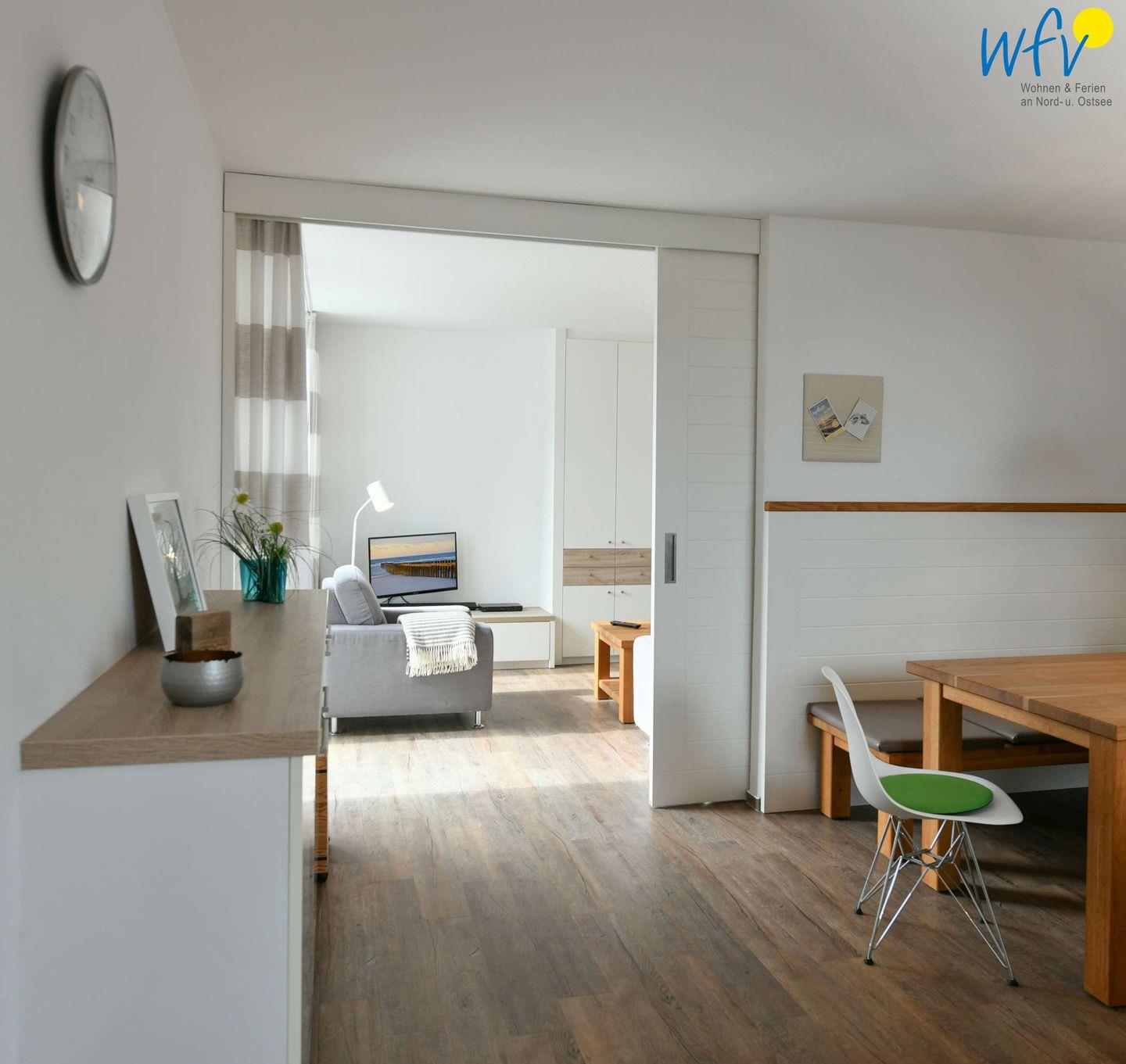 Helle, großzügig angelegte Räume, stilvolles Mobiliar und zusätzliche Details (wie zwei Flat-TVs, ein großer Esstisch und hochwertige Badarmaturen) garantieren Ihnen exklusiven Wohnkomfort. Die Wangerooger Ferienwohnung verfügt über einen aufteilbaren Wohn-/Essbereich mit Schlafsofa (Schiebetür zwischen Sofa und Esstisch), zwei separate Schlafzimmer, eine offene Küche, ein modernes Bad und einen sonnigen Balkon.