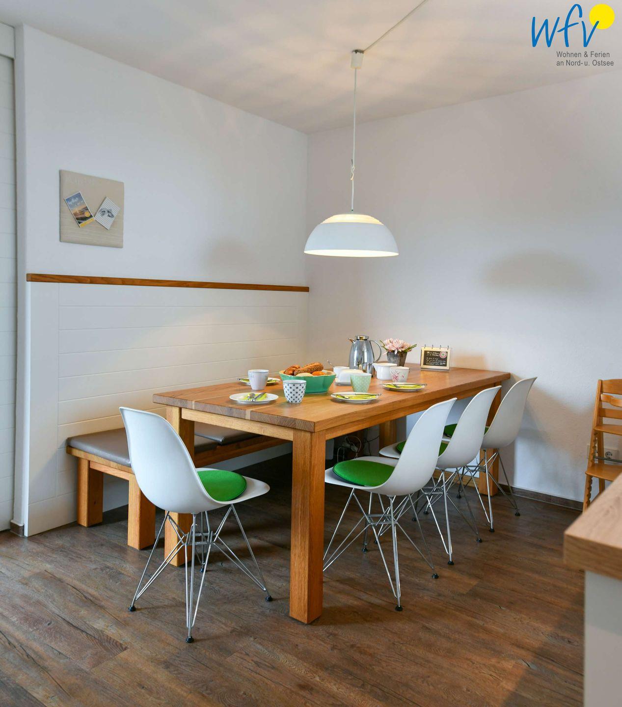 Das gemeinsame Kochen wird in der hochwertig ausgestatteten Wohnküche zum echten Highlight! Sie verfügt u.a. über einen Ceranfeld-Herd mit Backofen, einen Mikrowellenherd, einen großen Kühlschrank mit 3-Sterne-Fach und einen Geschirrspüler sowie ausreichend Besteck, Geschirr und gesondertes Kindergeschirr (Melamin). Darüber hinaus sind diverse Kleingeräte wie eine Siebträger-Espresso-Maschine, eine Kaffeemaschine, ein Toaster, ein Wasserkocher und ein Mixer vorhanden.