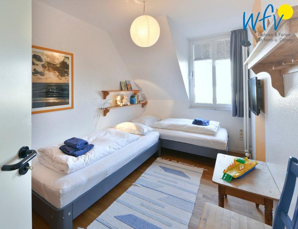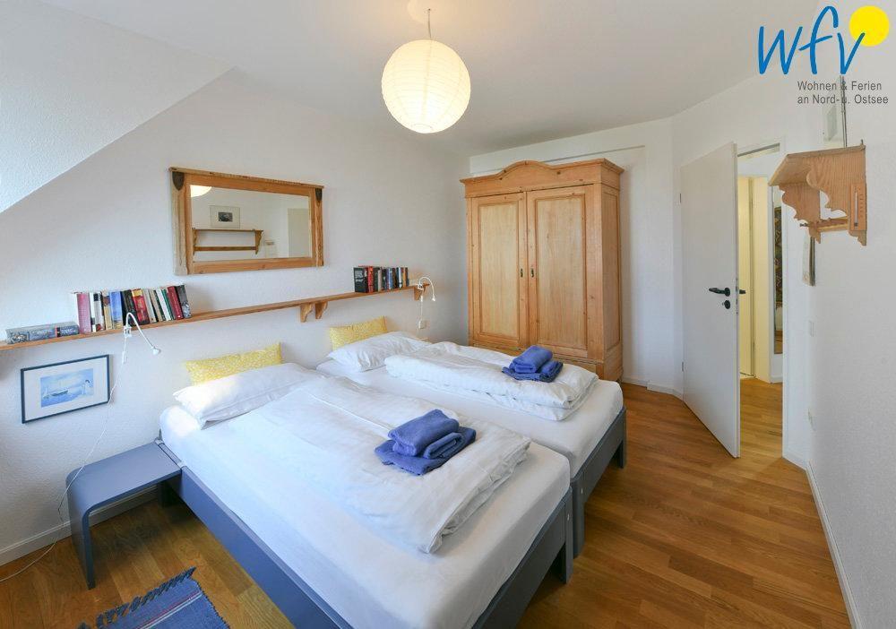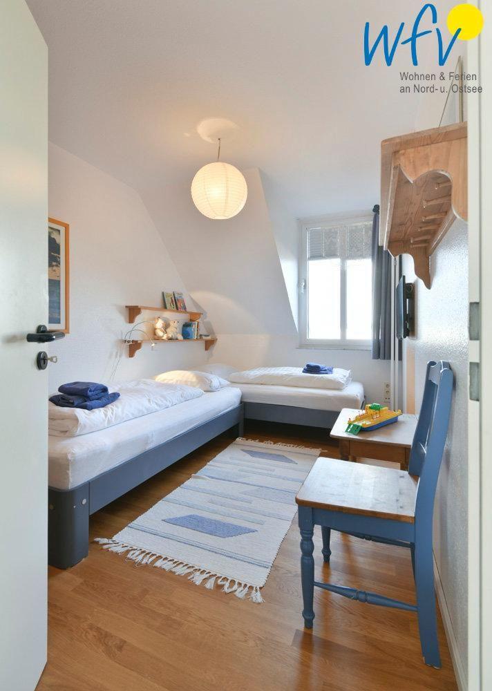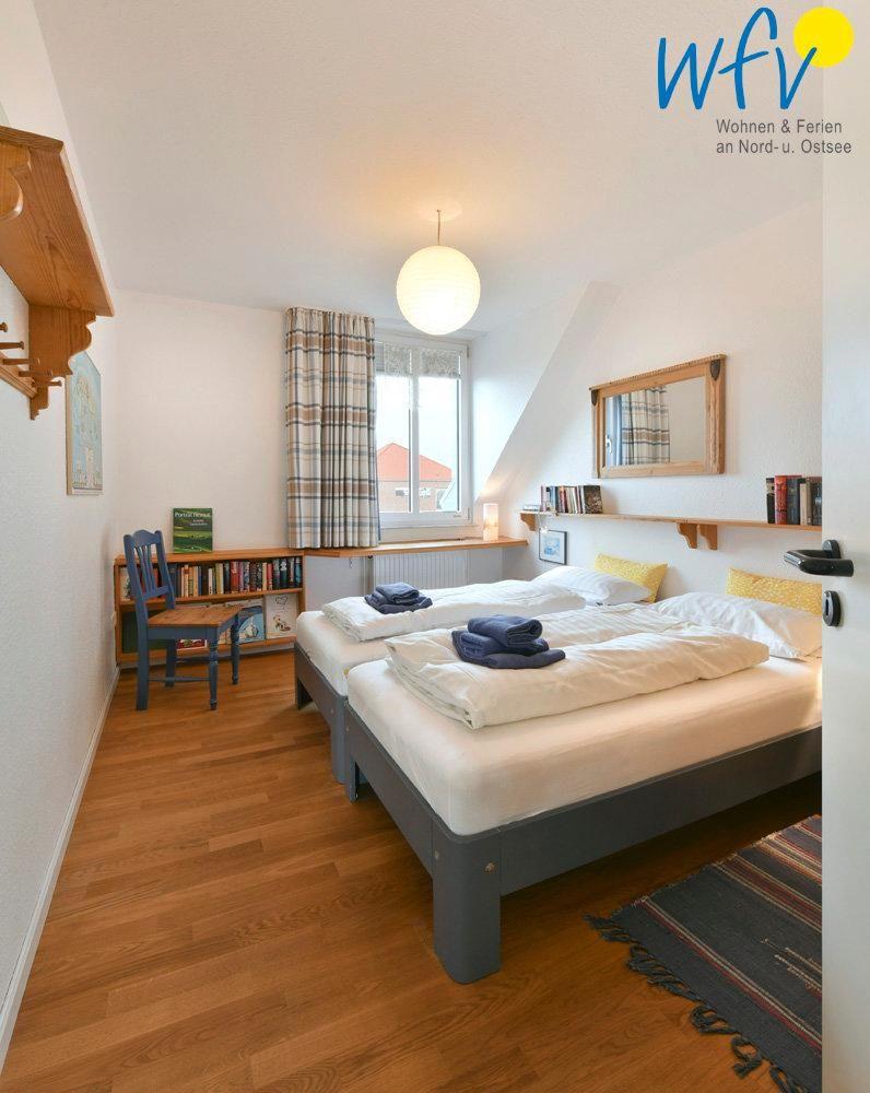 Wenn auf Wangerooge die Bürgersteige hochgeklappt werden, warten auf Sie bequeme Betten in zwei separaten Schlafzimmern. In einem befindet sich ein Doppelbett, das andere ist mit zwei Einzelbetten eingerichtet. Ein zweites TV ermöglicht hier, das Kinderprogramm ohne Eltern zu gucken.