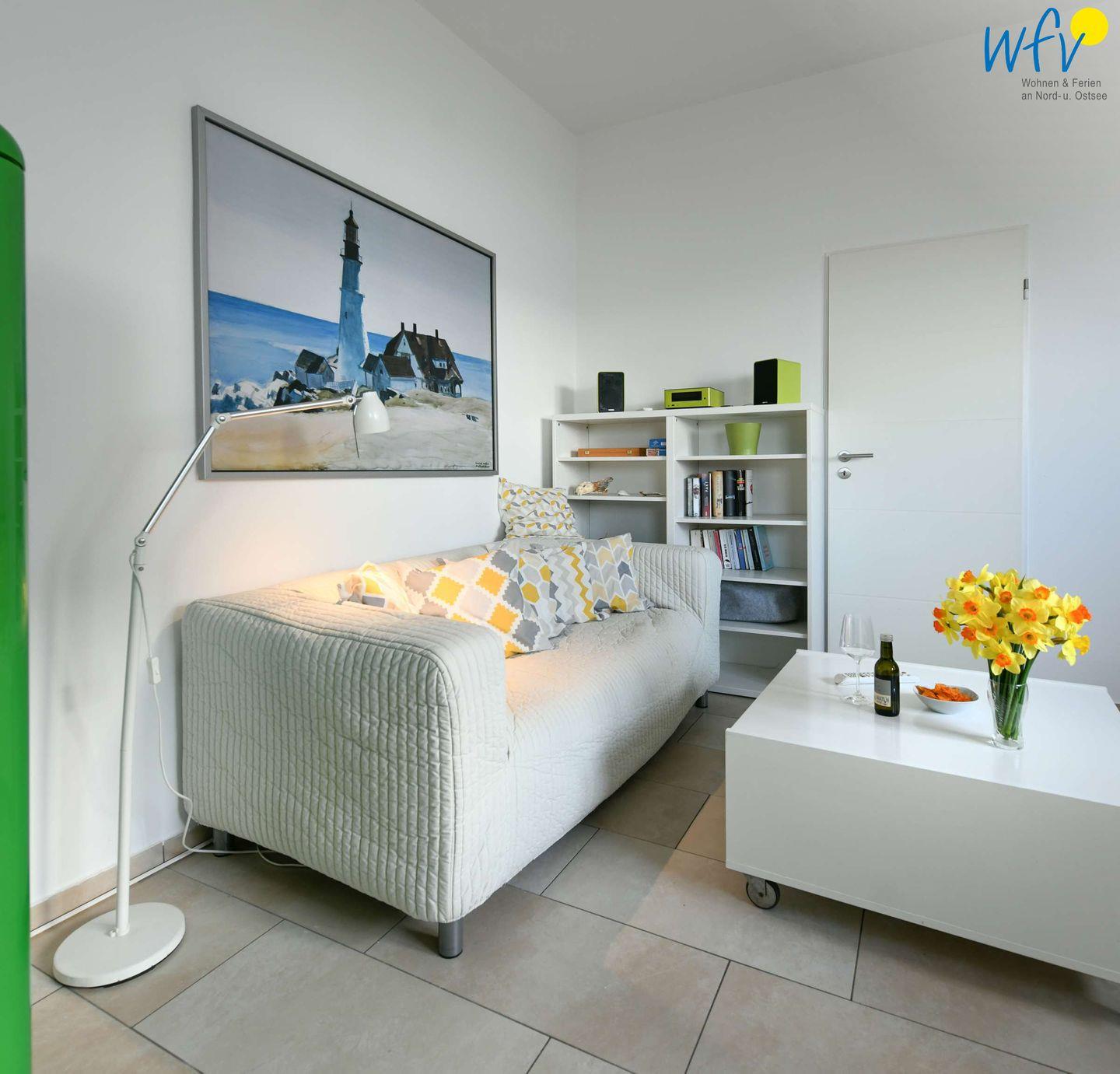 Machen Sie es sich in Ihrem Urlaub auf Wangerooge gemütlich! Der komfortable Wohnraum ist mit einer bequemen Sofa-Sitzecke ausgestattet. Zum Fernsehen, Musik hören oder Lesen gibt es einen 3D-LED-Fernseher, eine Stereoanlage und einen DVD-/Blu-ray-Player sowie eine Blu-ray-Sammlung und jede Menge Bücher.
