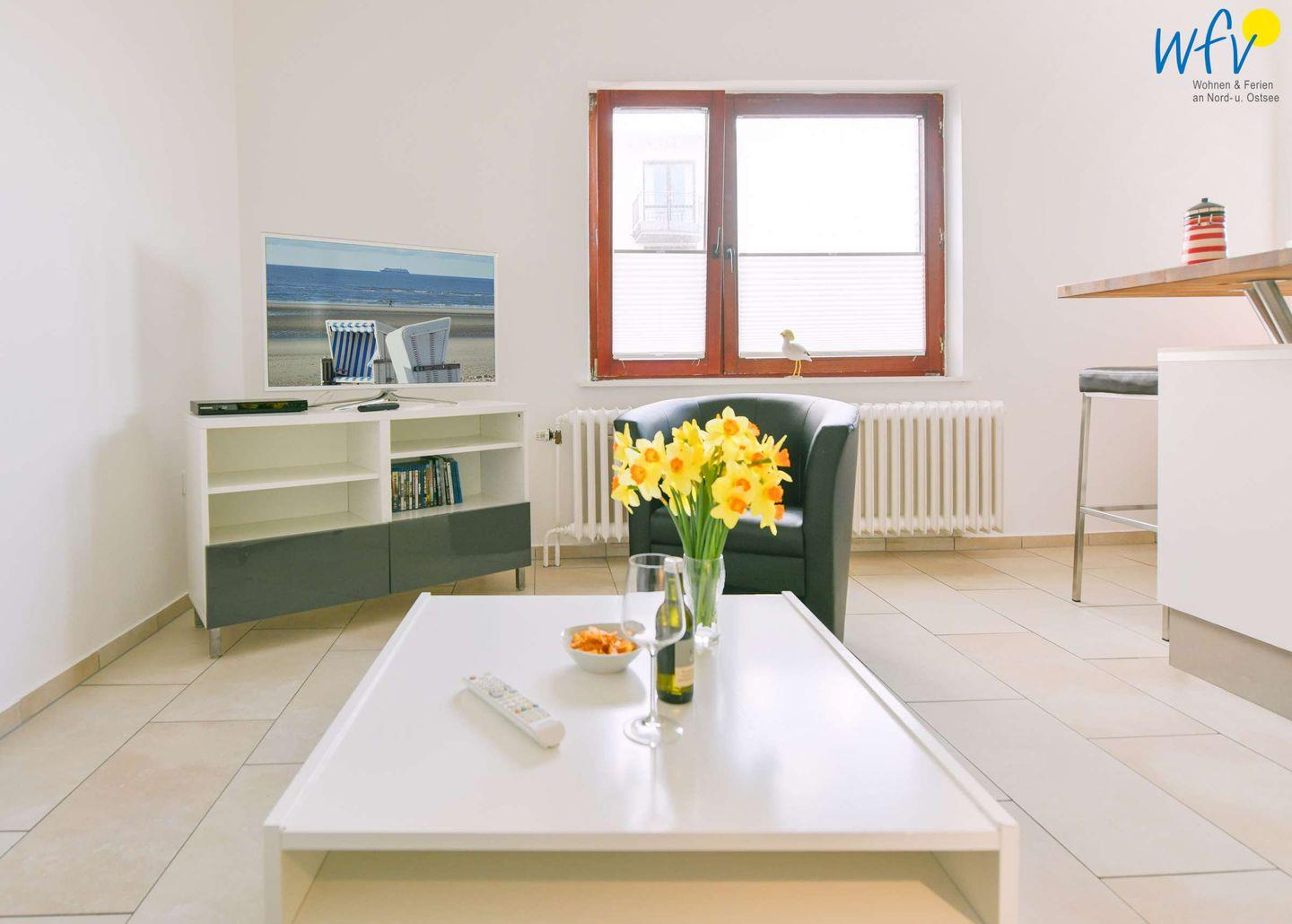 Moderne Ferienwohnung mit Meerblick, Sauna und Schwimmbad auf Wangerooge, ideal für Paare und Erholungssuchende.