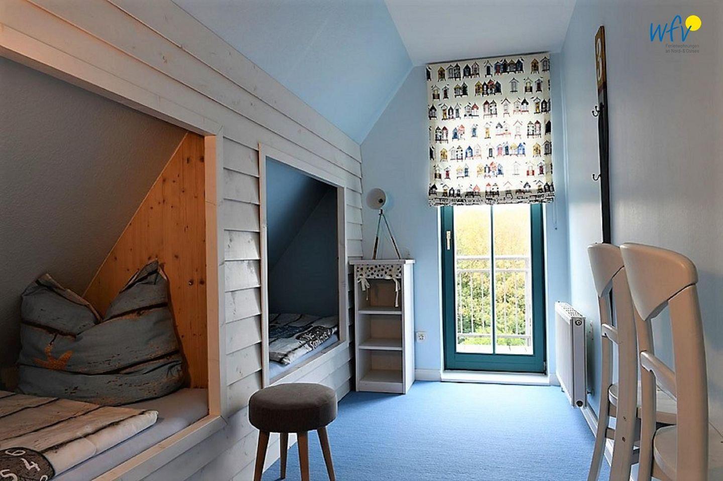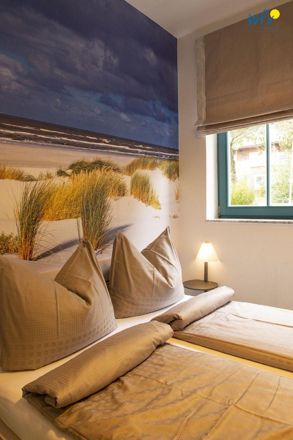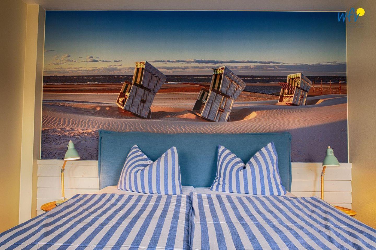Durch vier separate Schlafzimmer bestehen im "Haus im Süden" angenehme Rückzugsmöglichkeiten. Drei der Zimmer sind jeweils mit einem Doppelbett ausgestattet. In einem weiteren Schlafraum befinden sich zwei Einzelbetten (90x200 cm), die als moderne originelle Kojen angefertigt wurden und somit besonders Kindern einen wunderschönen Schlafbereich bieten. Für alle Betten wurden spezielle Allergikermatratzen angeschafft.
