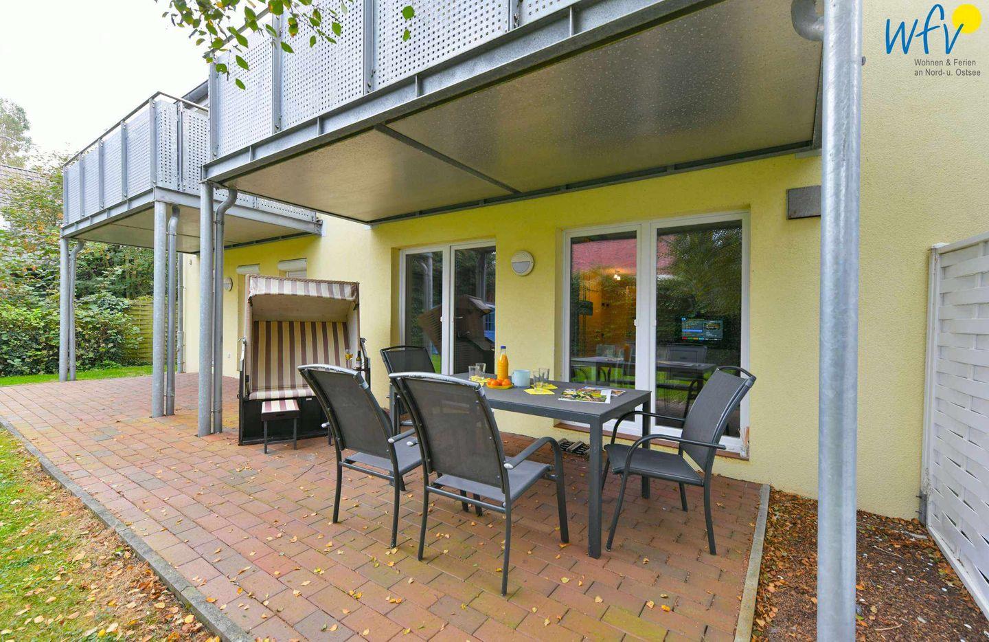 Genießen Sie traumhaft entspannte Stunden auf der großen, überdachten Terrasse mit angrenzendem Garten (ca. 60 m²). Hier im Strandkorb ein gutes Buch zu lesen, sich die Sonne ins Gesicht scheinen zu lassen und einfach mal auszuruhen sind unvergessliche Relaxmomente!
