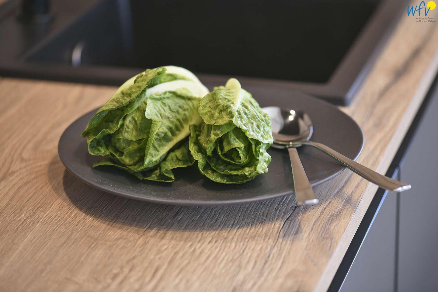 Schlicht und elegant überzeugt das Wohnzimmer mit schwarzer Küche, edlem Ledersofa und großem Esstisch. Auch von hier kommen Sie direkt auf den Balkon. Die Küche der Ferienwohnung auf Wangerooge ist bestens ausgestattet (Boschgeräte, Alessi, Nespressomaschine, Filterkaffeemaschine etc.) und lässt auch im Urlaub die Kochfreunde zur wahren Gourmets werden.
