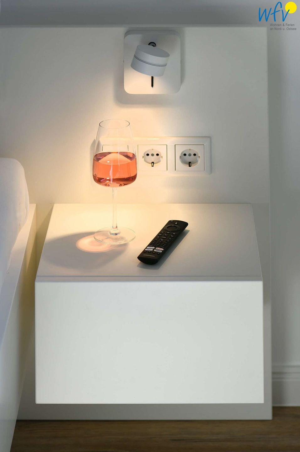 Das Elternschlafzimmer ist groß und gemütlich. Das maßgeschneiderte Bett, der SmartTV sowie der direkte Zugang zum Balkon lassen Sie entspannte Tage verbringen. Das Kinderzimmer mit passgenauem Etagenbett und einem kleinen Maltisch für Kinder sowie Möwentapete und Zugang zum Balkon lässt auch die "Kleinen" den Urlaub nicht so schnell vergessen.