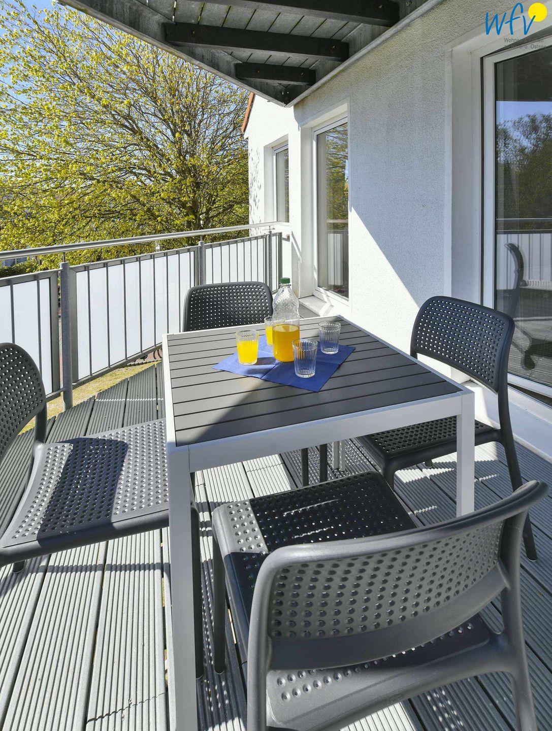 Gemütliche Ferienwohnung "Möwe" auf Wangerooge mit Balkon, moderner Küche und Wohlfühlambiente für Familienurlaub.