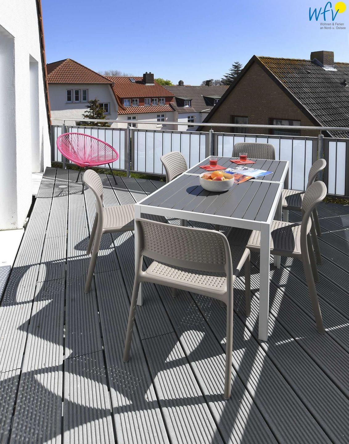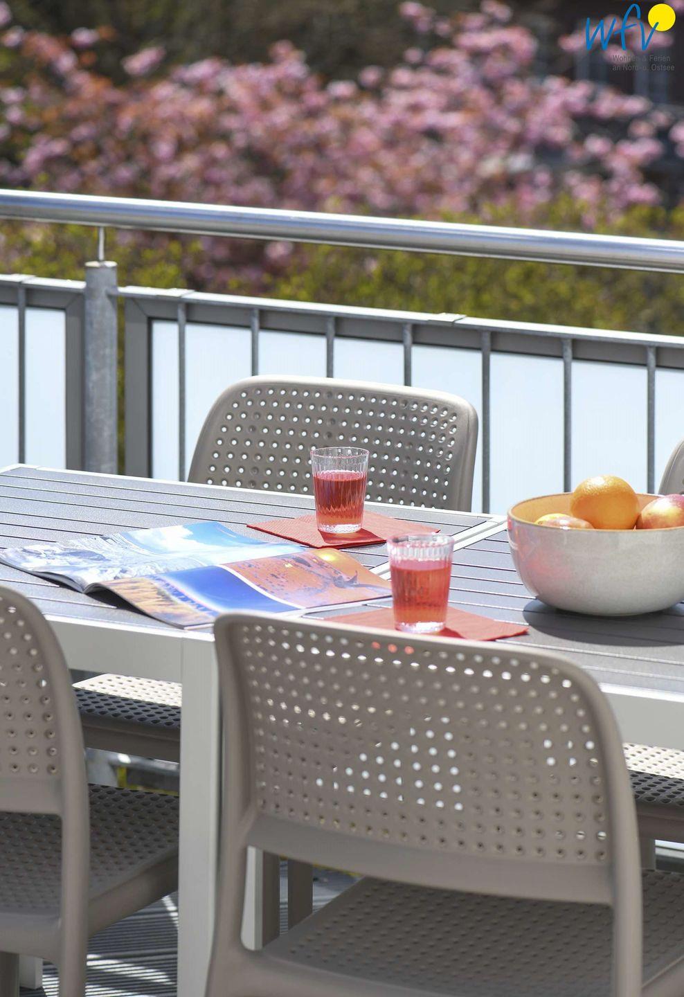 Vom Esstisch haben Sie einen herrlichen Blick auf den alten Leuchtturm und einen direkten Zugang auf den sonnigen Südbalkon.