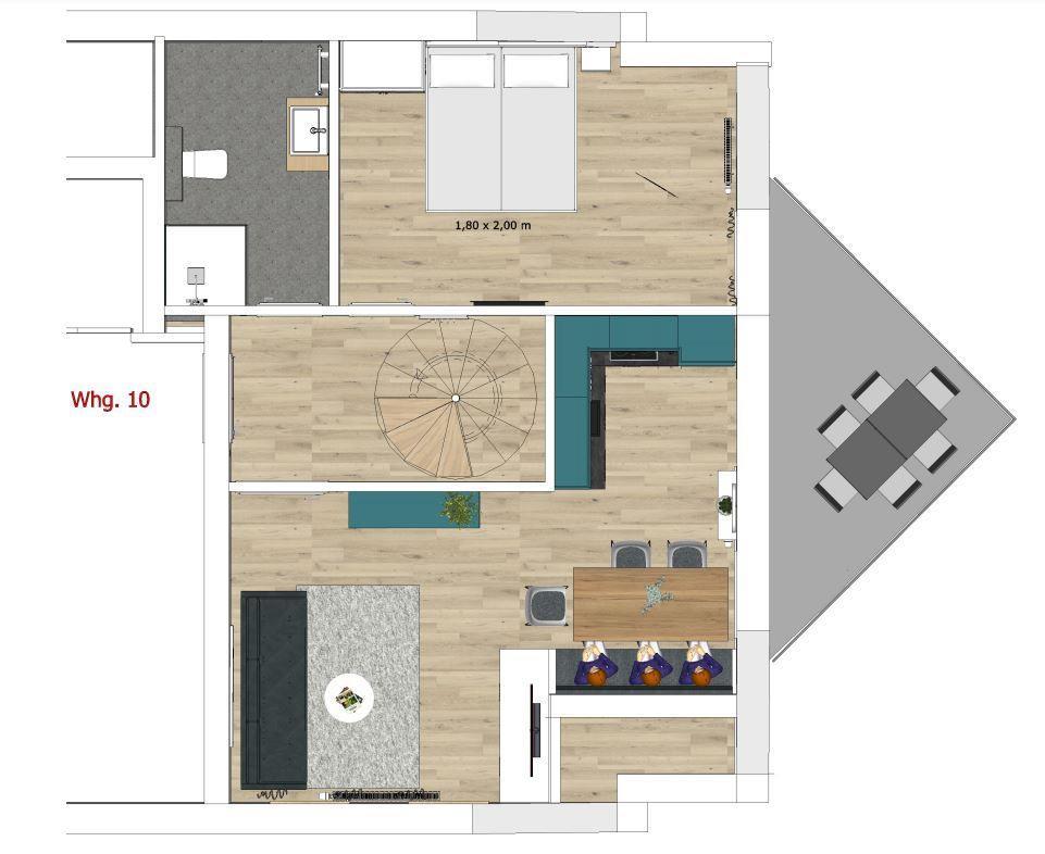 Die Maisonette-Wohnung erstreckt sich über das 2. Obergeschoss und das Dachgeschoss.