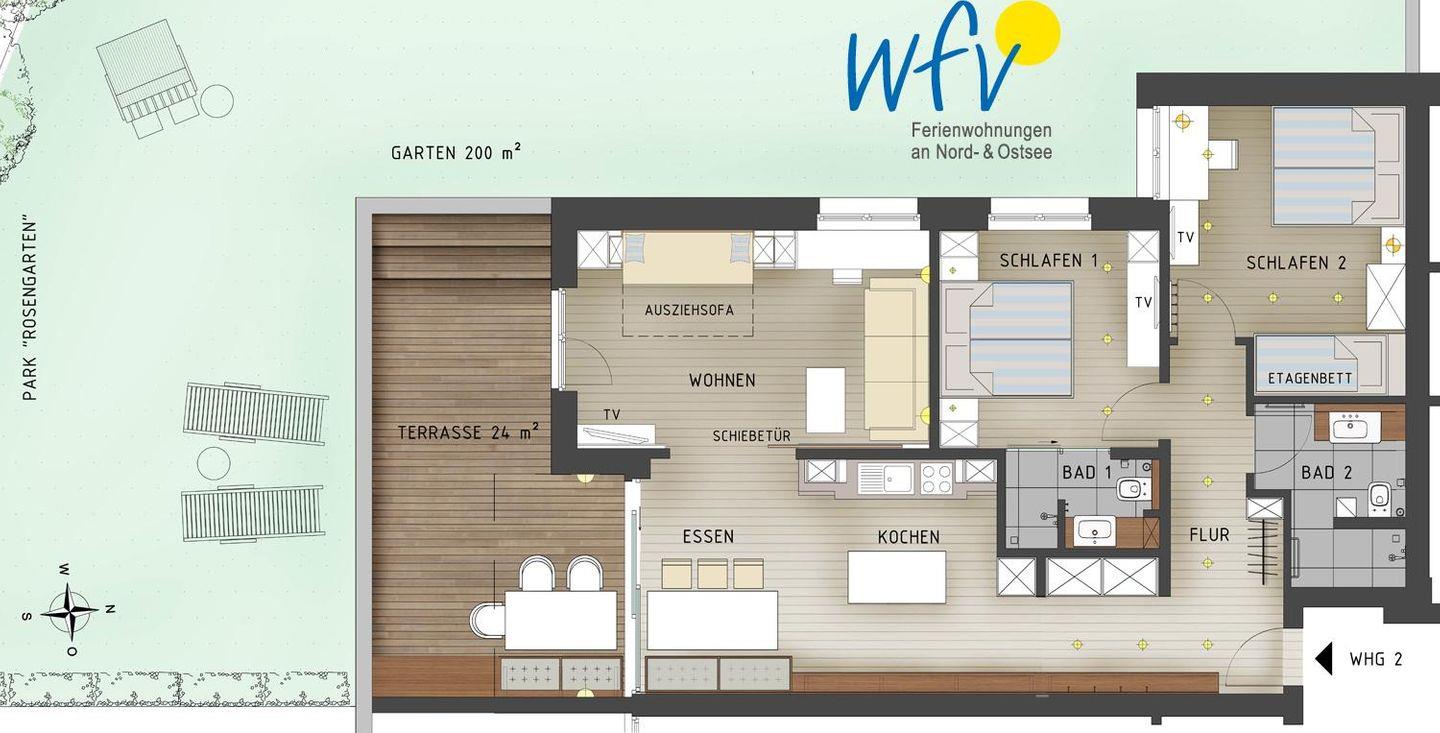 Moderne Ferienwohnung mit großer Terrasse auf Wangerooge