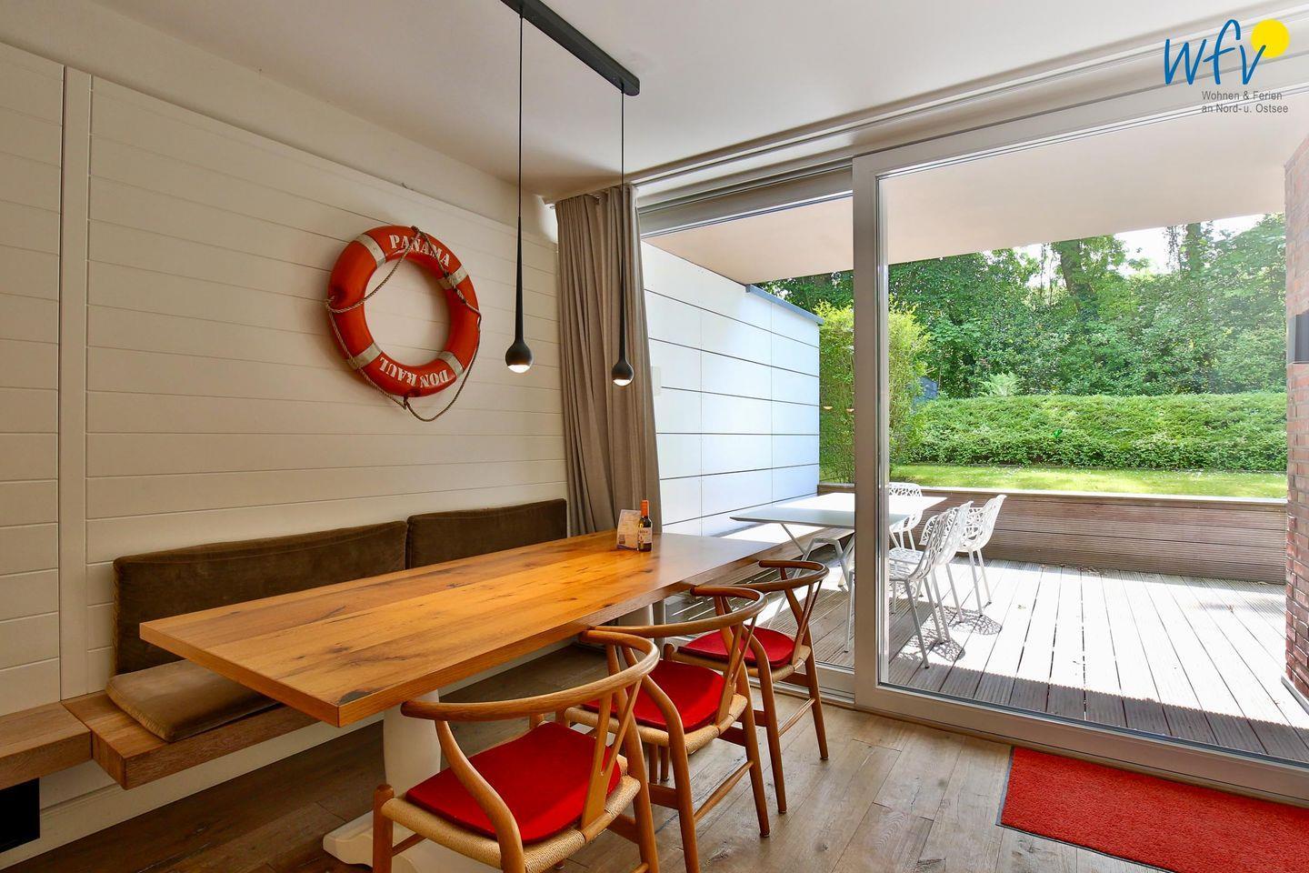 Moderne Ferienwohnung mit großer Terrasse und Garten auf Wangerooge für erholsame Urlaubstage.