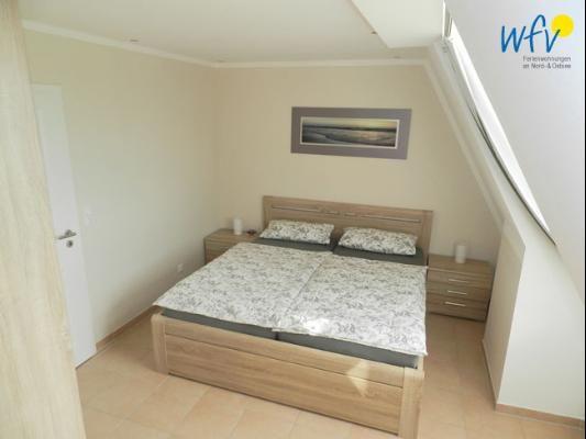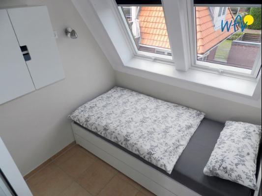 Komfortable Betten laden in Ihrem Wangerooge-Urlaub zum ausgiebigen Ausschlafen ein! Eines der zwei separaten Schlafzimmer verfügt über ein Doppelbett. Von hier aus haben Sie einen tollen Blick auf den Westturm von Wangerooge. Im zweiten Schlafzimmer befindet sich ein Einzelbett mit einem optional ausziehbaren Kojenbett.