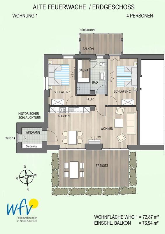HERZLICH WILLKOMMEN in der "Alten Feuerwache" auf Wangerooge! Auf über 70 m² Wohnfläche erwartet Sie eine Wohlfühlatmosphäre für bis zu vier Personen!