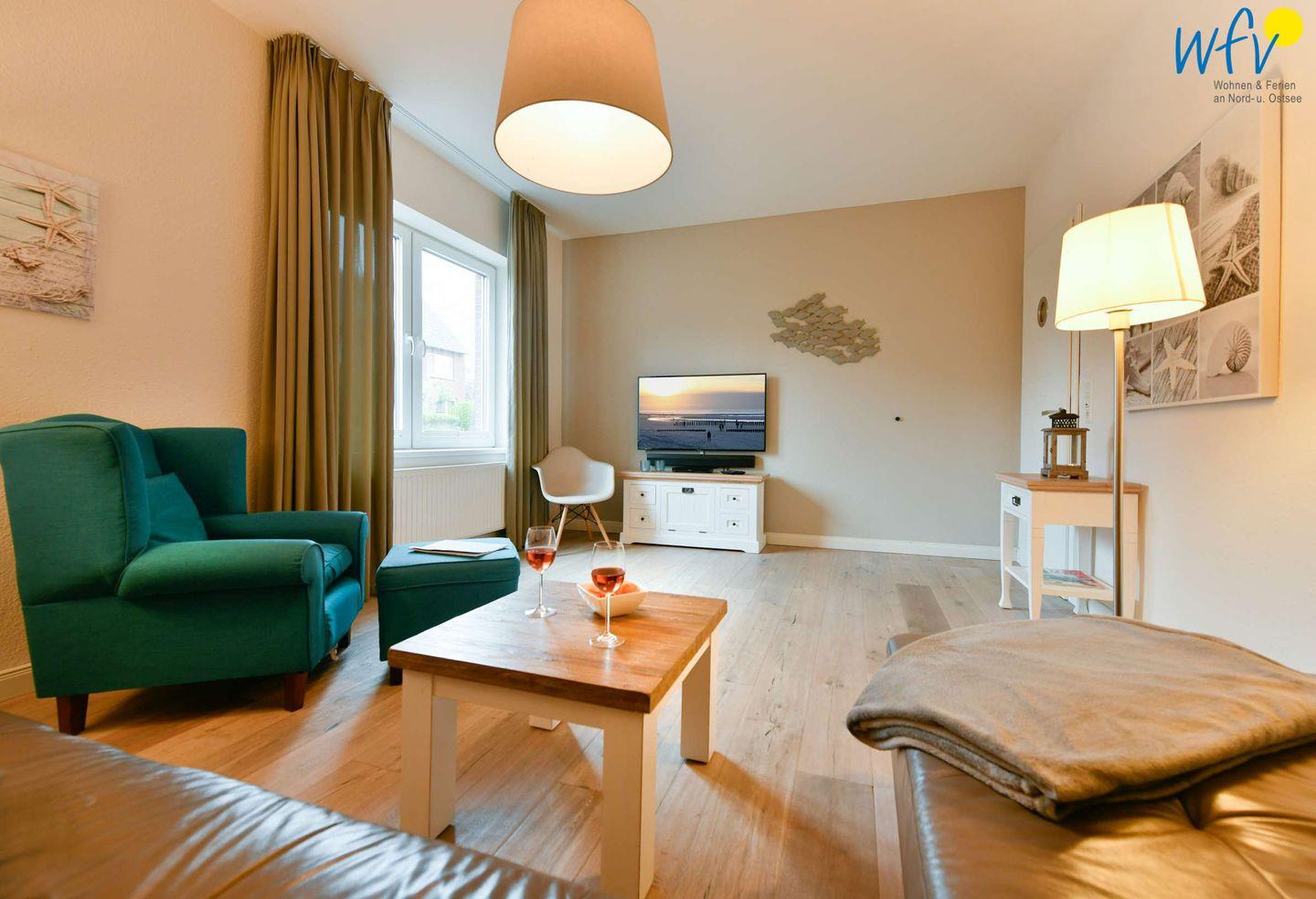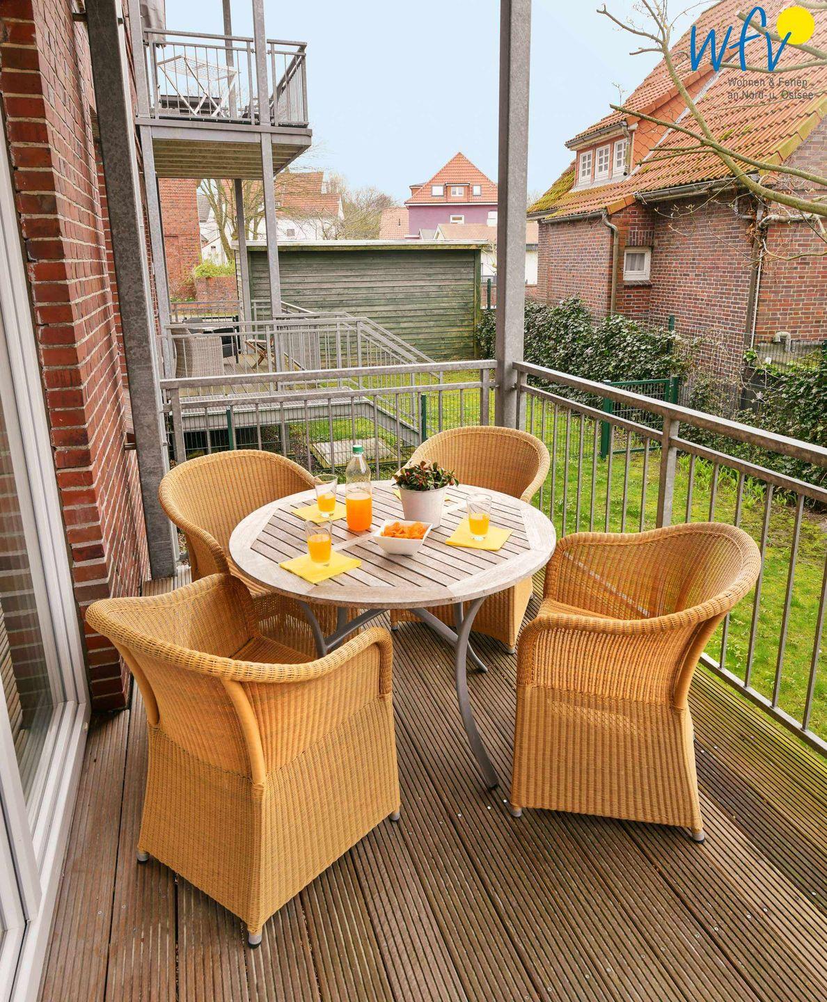 Moderne Ferienwohnung auf Wangerooge mit Sauna, Südbalkon und gemütlichem Garten für entspannte Urlaubstage.