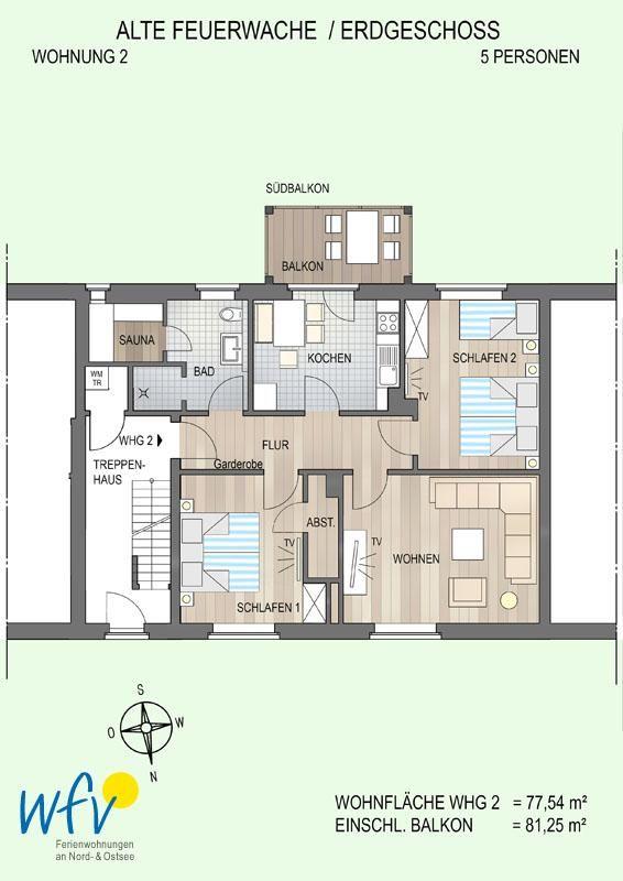 Highlights dieser Ferienwohnung auf Wangerooge sind eine eigene Sauna im Badbereich sowie ein traumhafter Südbalkon! Zu der Ferienwohnung gehört außerdem ein schönes Gartengrundstück, in dem Sie wunderbar relaxen können!