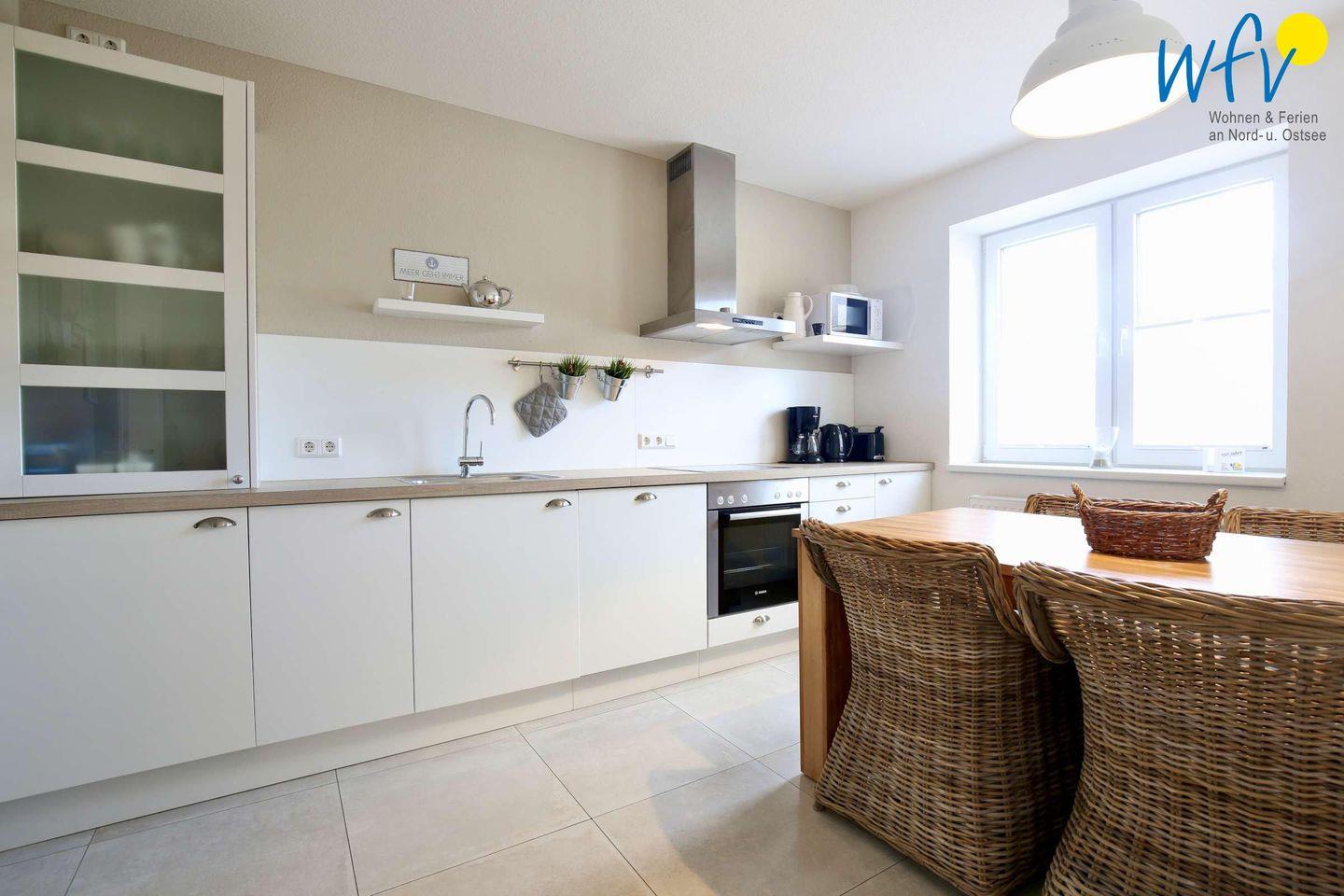 Kochfans fühlen sich bei uns rundum wohl! Die Ferienwohnung auf Wangerooge besitzt eine separate voll eingerichtete Küche (u.a. mit Ceranherd, Backofen und Spülmaschine).Der große Esstisch lädt hier zu lustigen Spieleabenden oder gemeinsamen Mahlzeiten ein.