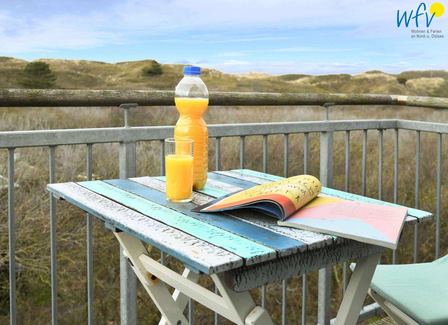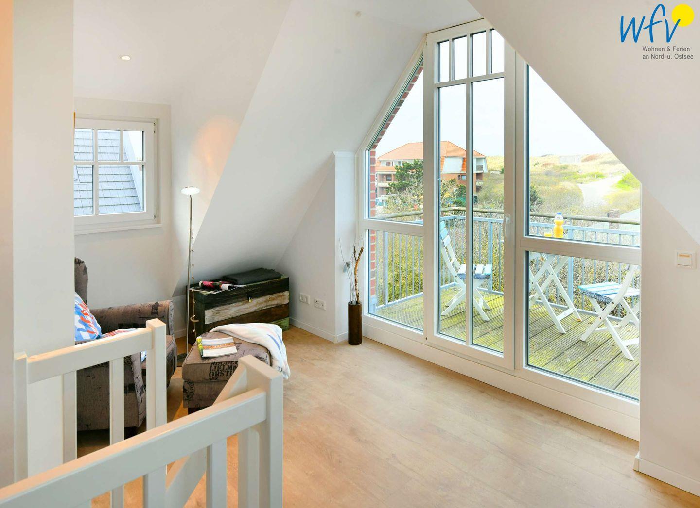 Moderne Ferienwohnung Strandgut auf Wangerooge mit Strandblick, Balkon, Kamin und großer Terrasse für erholsame Urlaubstage.