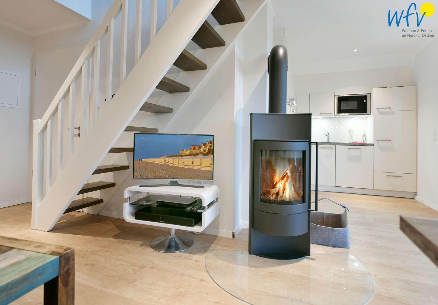 Exklusive Ferienwohnung mit Strandblick, Balkon, Kaminofen und moderner Ausstattung