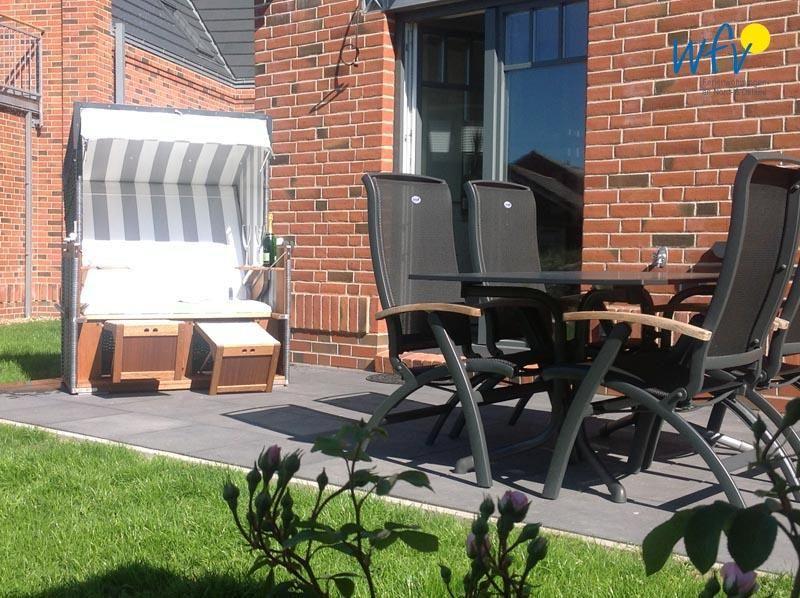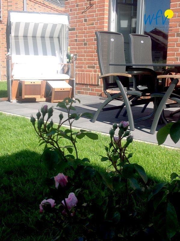Für herrliche Relaxmomente besitzt die Ferienwohnung außerdem eine Südterrasse mit wohnungseigenem Garten - mit Sonne und Nordseeluft von morgens bis abends! Hier im Strandkorb ein gutes Buch lesen, im Garten spielen oder abends gemütlich bei einem Glas Wein den Tag ausklingen lassen - das ist Urlaub pur!
