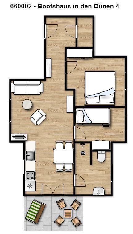 Willkommen in der stilvollen Ferienwohnung 'Bootshaus in den Dünen - 4' auf Wangerooge, perfekt für erholsame Tage inmitten der Natur.