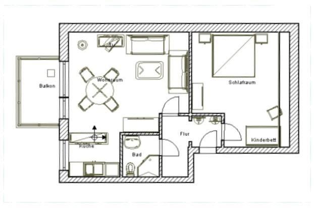 Wohnfläche 45 m²