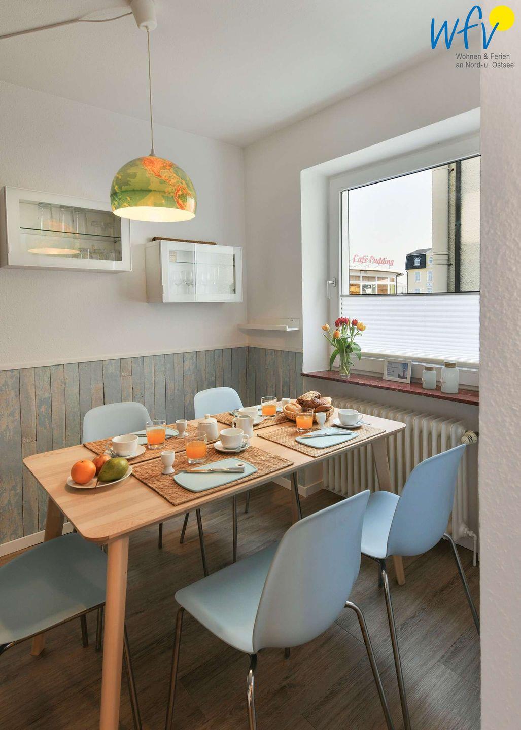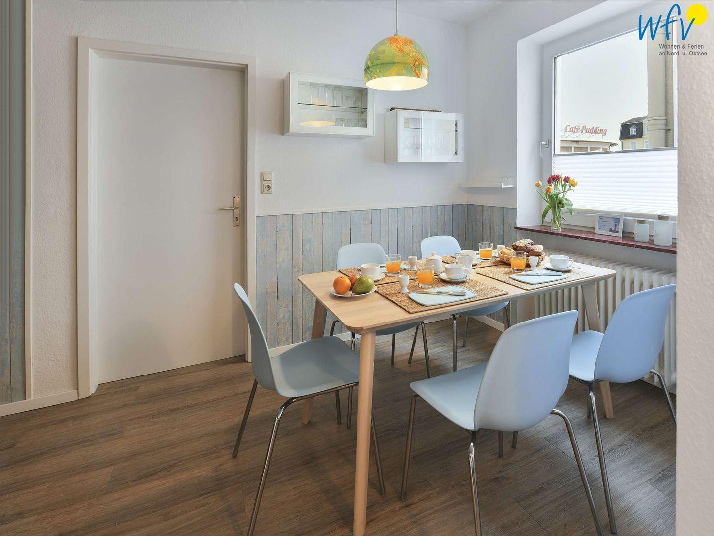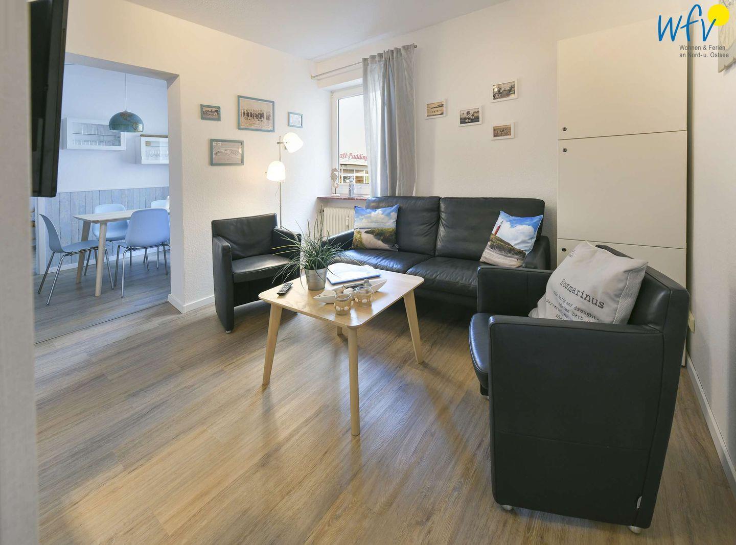 Ferienwohnung am Wangerooger Badestrand mit moderner Ausstattung und kostenlosem WLAN für bis zu vier Personen.