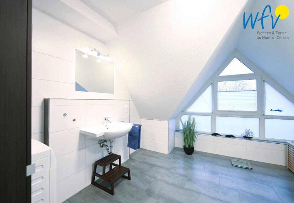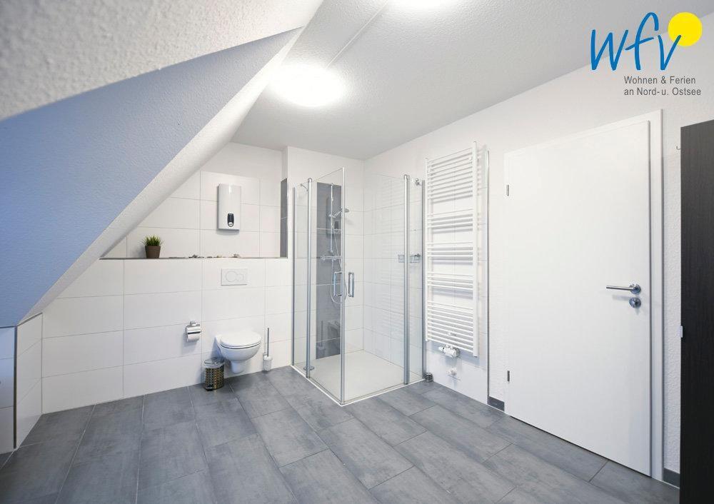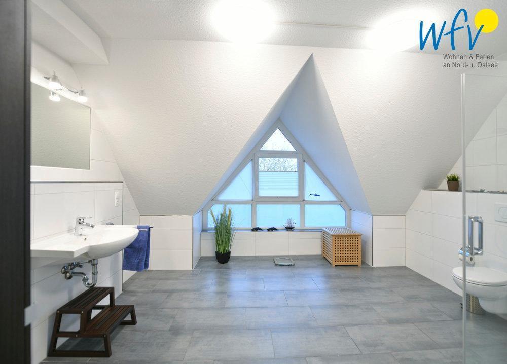 Die Ferienwohnung ist 85 m² groß und erstreckt sich über das 1. Obergeschoss und das Dachgeschoss. Im Obergeschoss verfügt sie über einen komfortablen Wohnraum mit einer integrierten offenen Küche. Ein Schlafzimmer und ein hochwertiges Badezimmer mit Dusche befinden sich sowohl im Obergeschoss, als auch im Dachgeschoss.