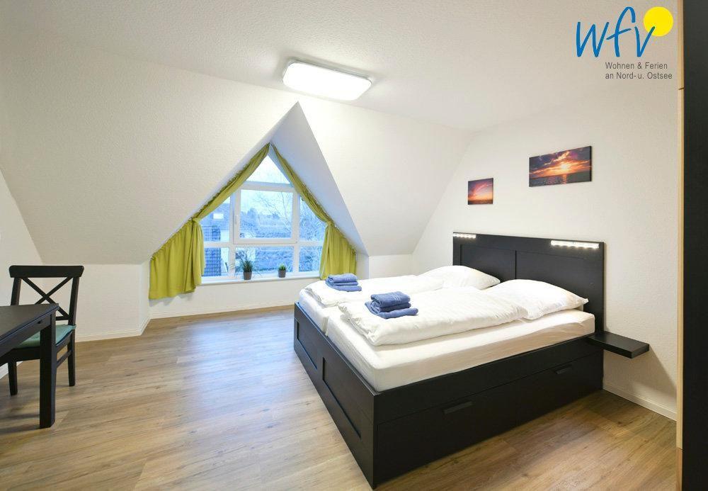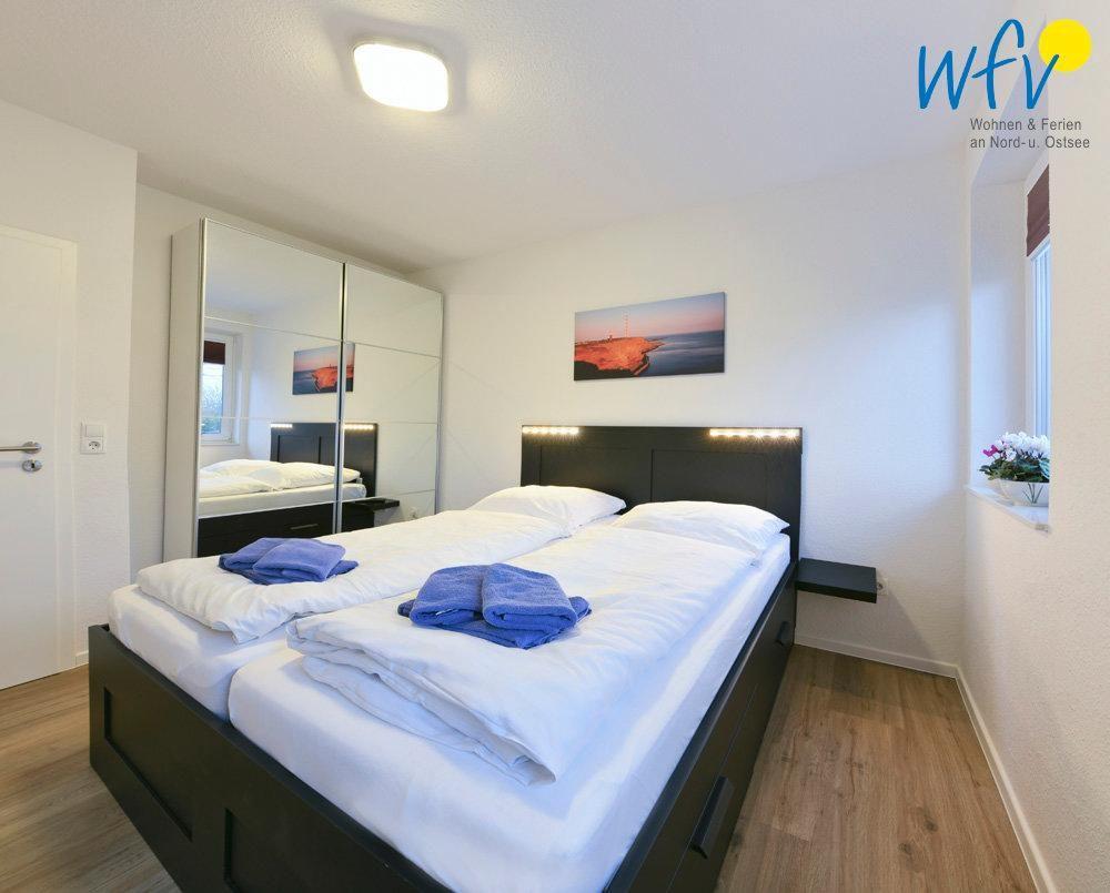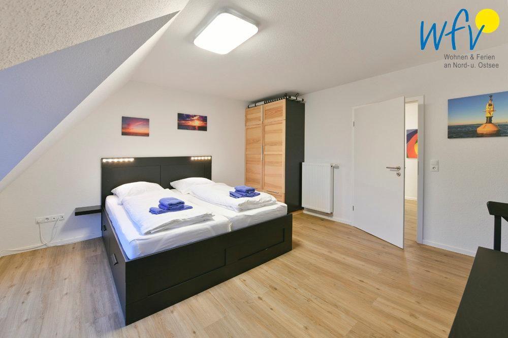 Die beiden separaten Schlafzimmer sind jeweils mit einem Doppelbett sowie einem TV eingerichtet; gemütliches Flair sorgt hier für Entspannung. Außerdem befindet sich im Flur des Dachgeschosses ein komfortables Schrankbett (für eine Person).