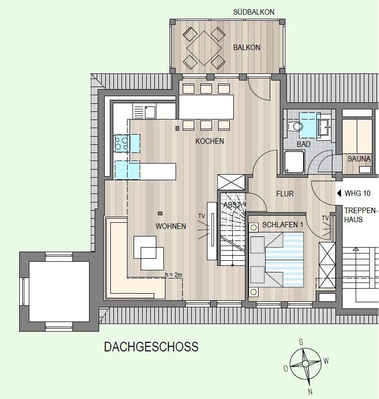 Lassen Sie sich auf 75 m² Wohnfläche über zwei Etagen rundum verwöhnen! Helle Farben und moderne Möbel machen diese Ferienwohnung zu einer absoluten Wohlfühloase. In dem gemütlichen Wohnraum, auf dem sonnigen Balkon oder in der eigenen Sauna sind Ihnen entspannte Verwöhnmomente garantiert!