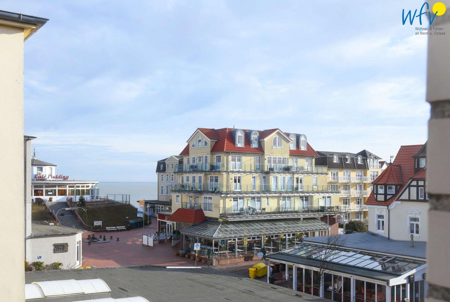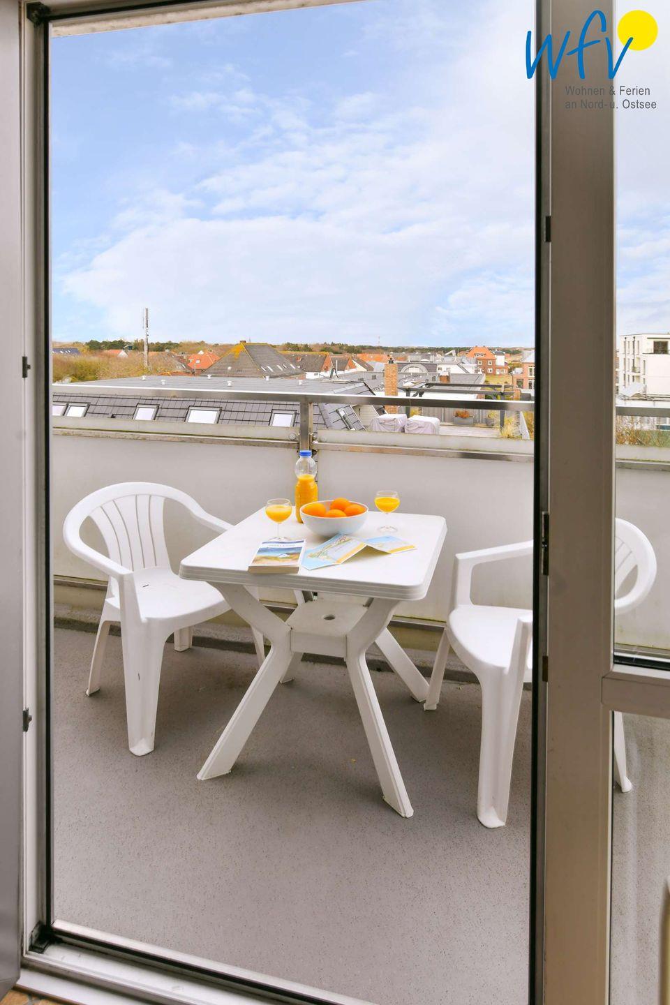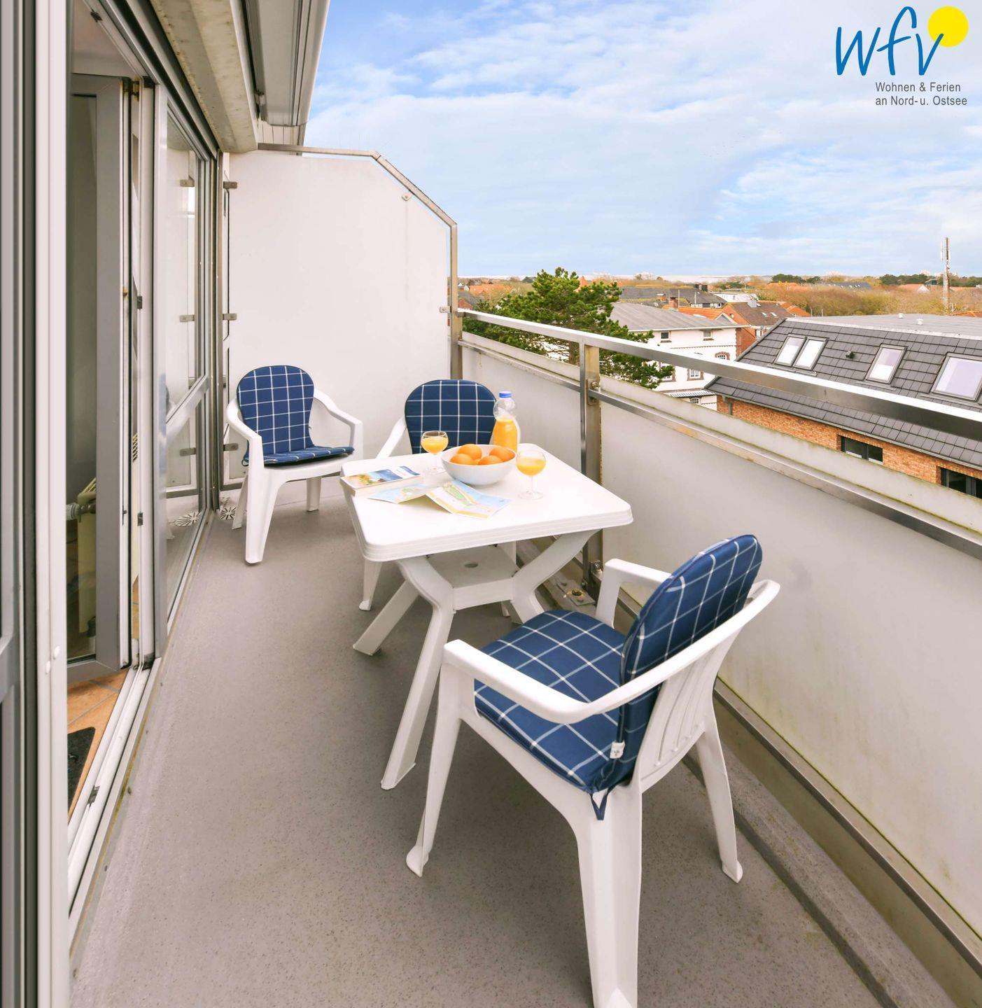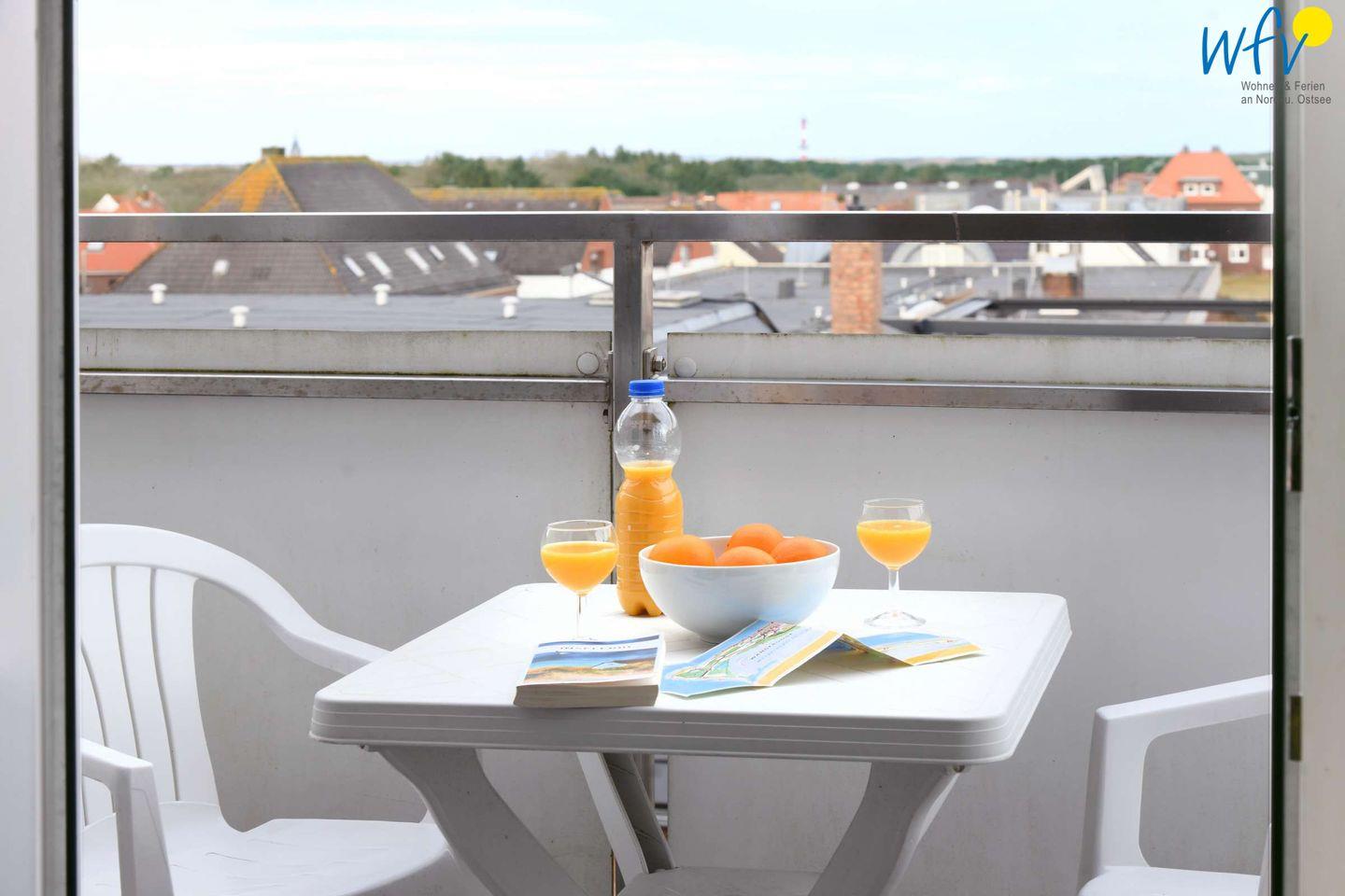 Moderne Ferienwohnung mit Balkon und eingeschränktem Meerblick auf Wangerooge, strandnah und zentral gelegen.
