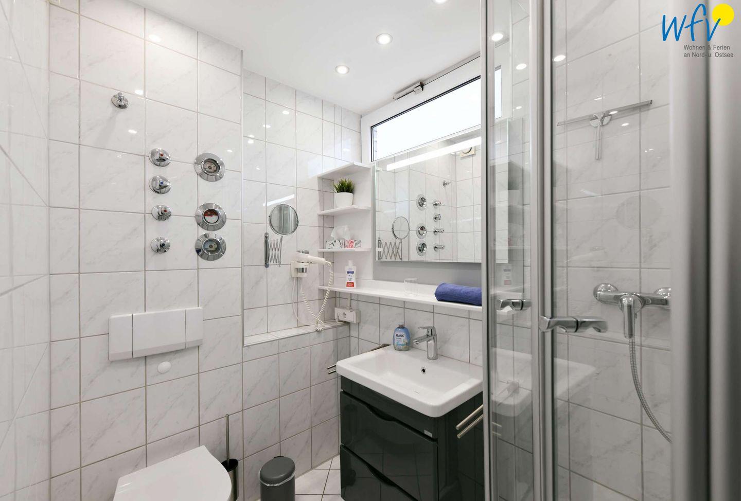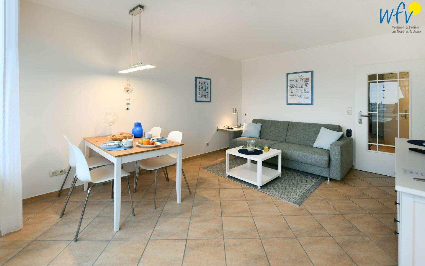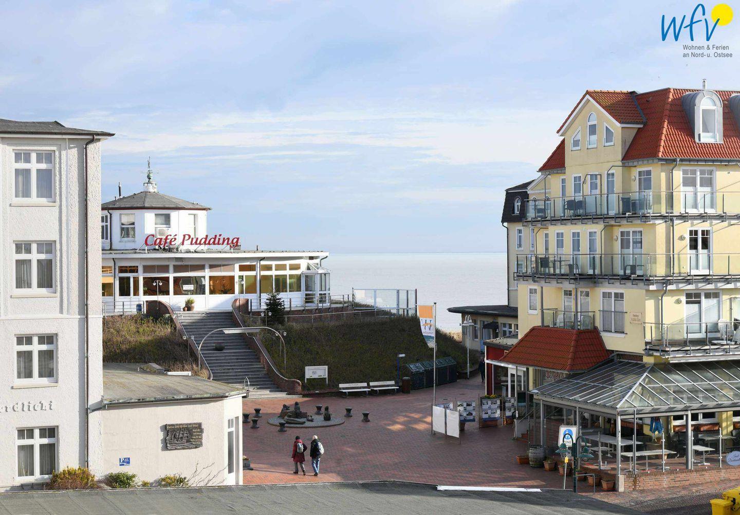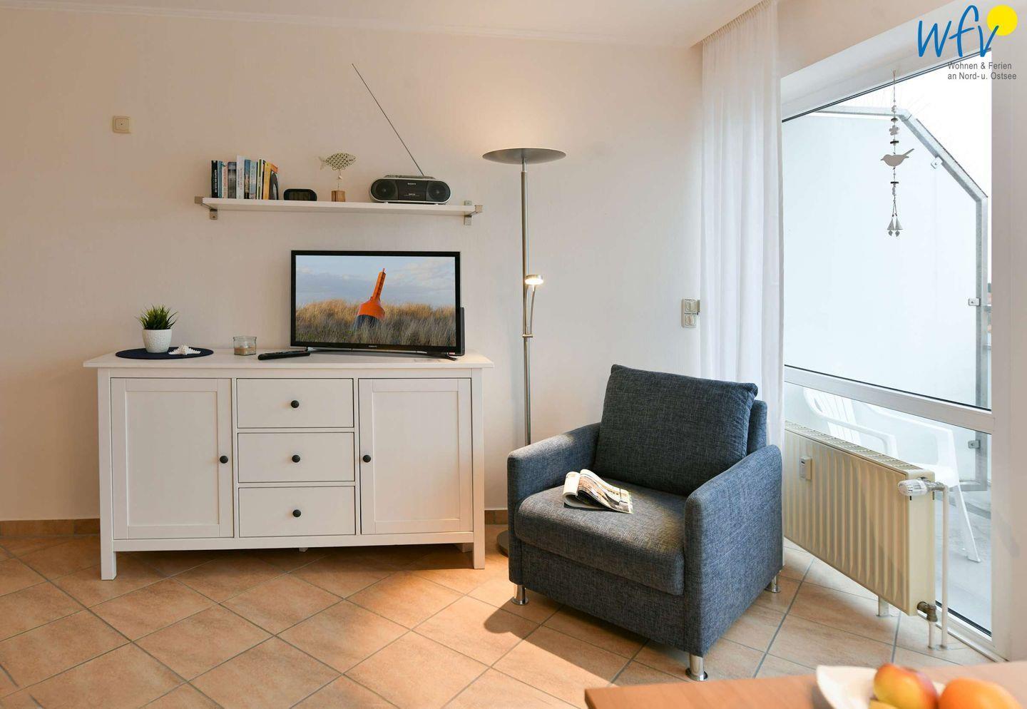 Moderne Ferienwohnung mit Balkon und eingeschränktem Meerblick auf Wangerooge, strandnah und zentral gelegen.