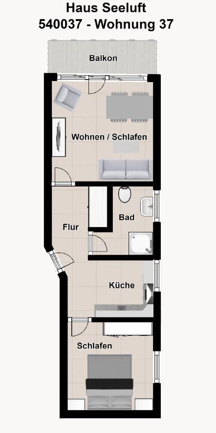 Die Ferienwohnung ist knapp 40 m² groß und verfügt über einen kombinierten Wohn-/Schlafraum, ein separates Schlafzimmer, eine Küche, ein Bad und einen Balkon. Durch die liebevolle Einrichtung werden Sie sich auf Anhieb wohlfühlen.
