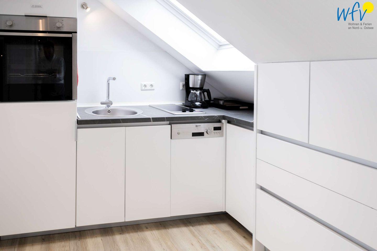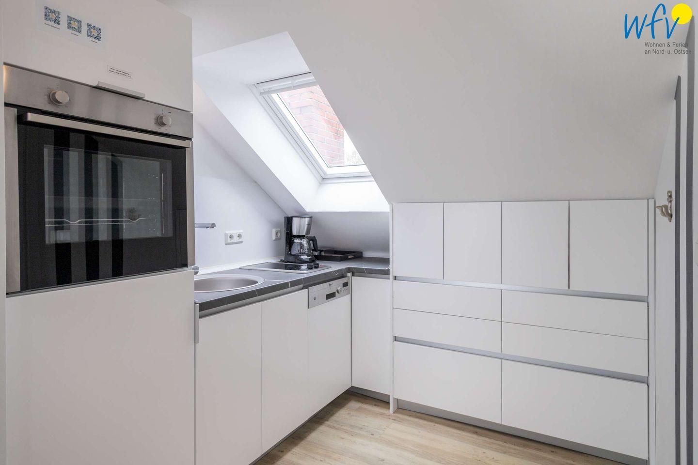 Eine moderne Küche macht das Kochen zum Kinderspiel in Ihrem Wangerooge-Urlaub! Sie verfügt u.a. über Herd, Backofen, Kühlschrank mit Gefrierfach, Mikrowelle und Geschirrspüler sowie Kaffeemaschine, Wasserkocher, Toaster und Mixer.