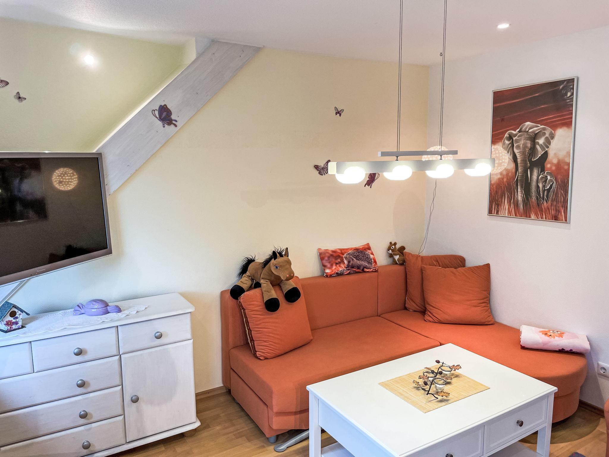Gemütliche 2-Zimmer-Wohnung mit Balkon und Whirlpool nahe Wanna, ideal für entspannte Ferien in der Natur.