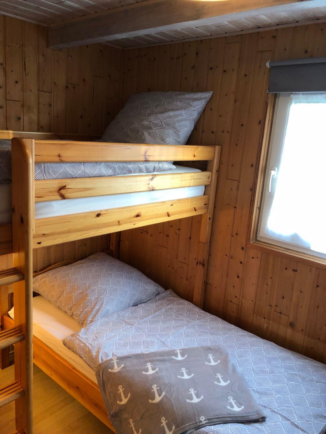 Von den 2 Schlafzimmern ist eines mit einem Doppelbett (1,60x 2m, 2 Einzelmatratzen)und das andere mit einem Etagenbett (0,80x 2m) möbliert. Verdunklungsrollos und Fliegengitter sorgen für einen erholsamen Schlaf, damit man ausgeruht in den nächsten Tag starten kann.