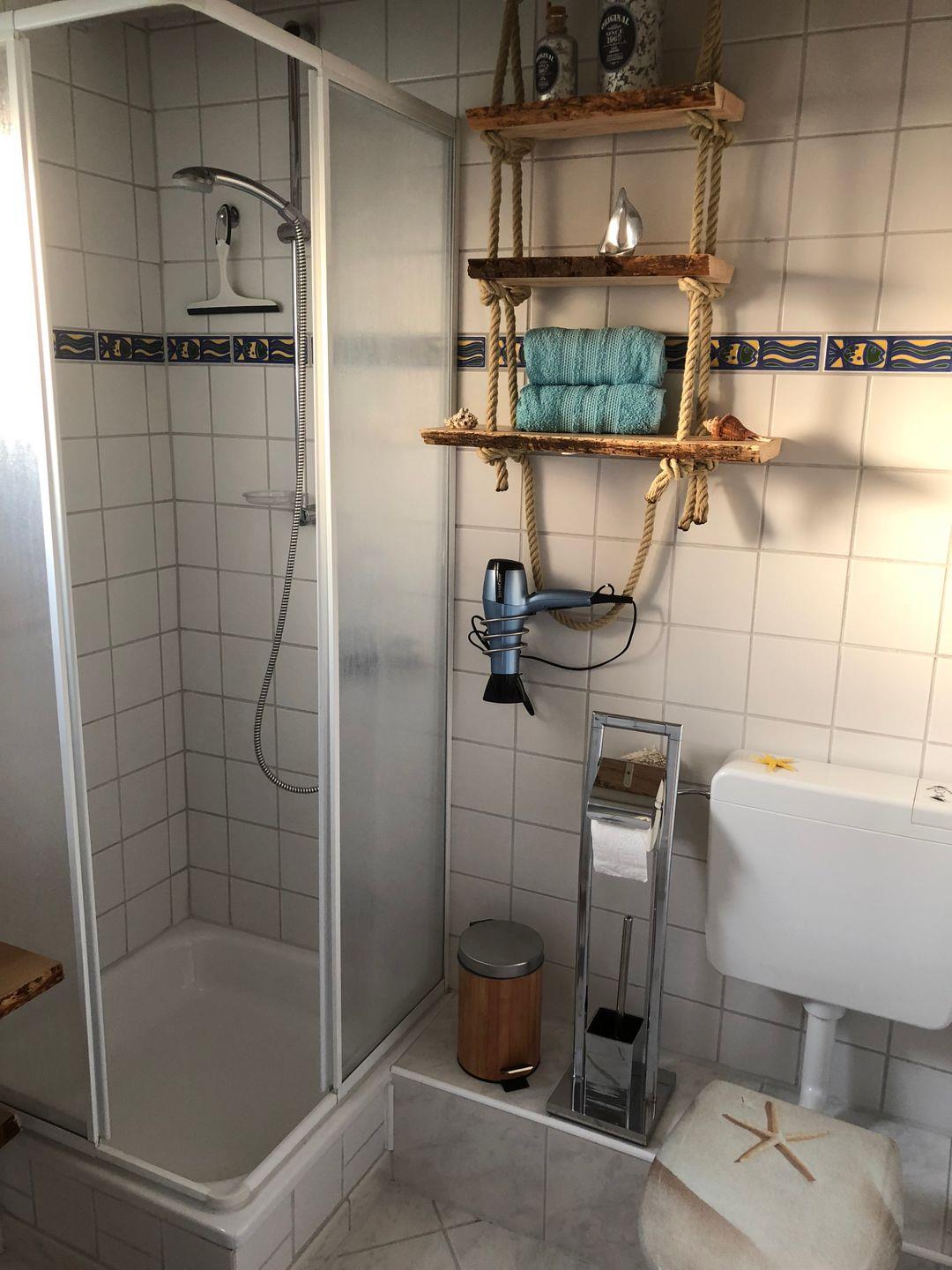 Ein neues Tageslichtbad mit Dusche komplettiert dieses hübsche Ferienhaus.