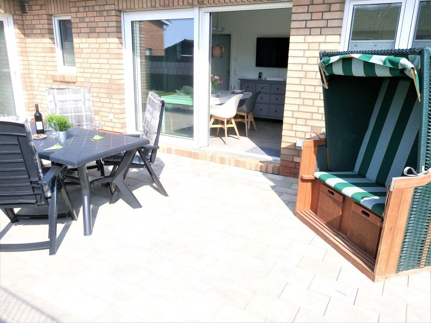 Sie werden Ihren Urlaub in diesem Haus genießen, wenn Sie auf der Sonnenterrasse, die hinter dem Haus liegt, nach einem Strandspaziergang an der Nordsee entspannen.