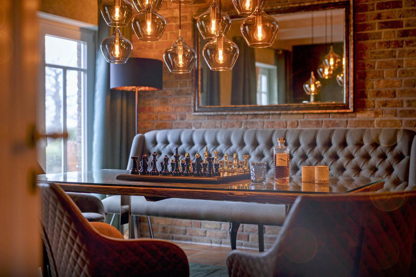 Ein echtes Highlight der Küstenvilla ist der atemberaubende offene Kamin, der im Winter oder an kühleren Abenden eine warme, gemütliche Atmosphäre schafft. Stellen Sie sich vor, wie Sie in einer der bequemen Sofas mit einem guten Buch und einem Glas Wein entspannen, während das Knistern des Feuers den Raum erfüllt. Das großzügige Wohnzimmer lädt nicht nur zu entspannten Stunden im Kreis Ihrer Liebsten ein, sondern bietet Ihnen auch moderne Unterhaltungsmöglichkeiten, wie einen Beamer für Filmabende und sogar eine Radio und WLAN-Anschluss, damit Sie auch in Ihrem Urlaub immer gut verbunden bleiben. Der große Essbereich mit seinem einladenden Esstisch und einer separaten Garderobe ist der ideale Ort, um köstliche Mahlzeiten zu genießen oder gesellige Abende zu verbringen.